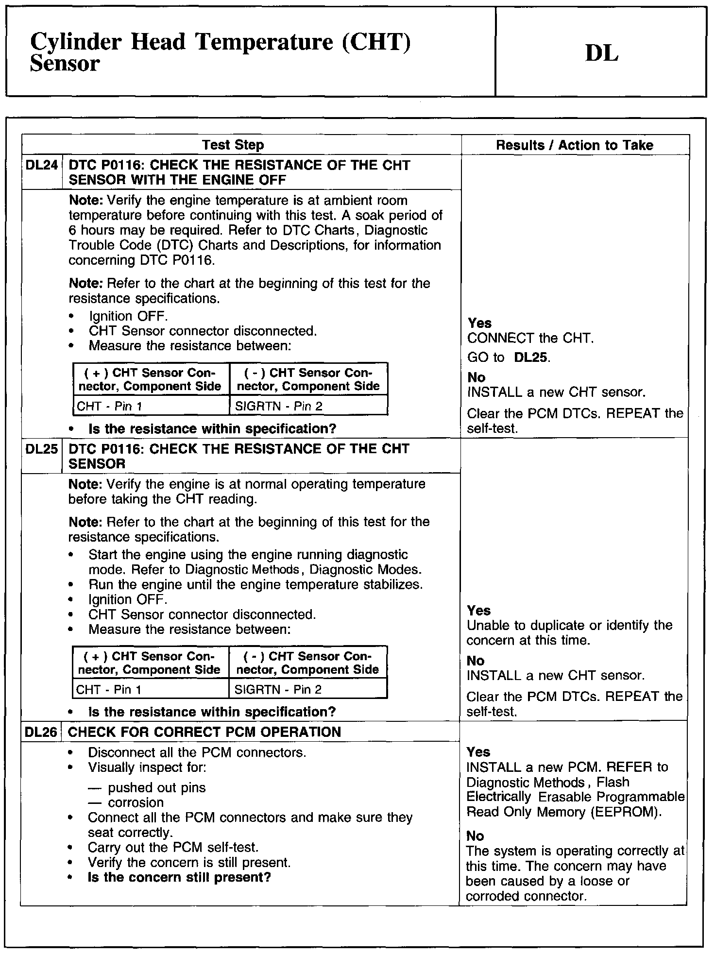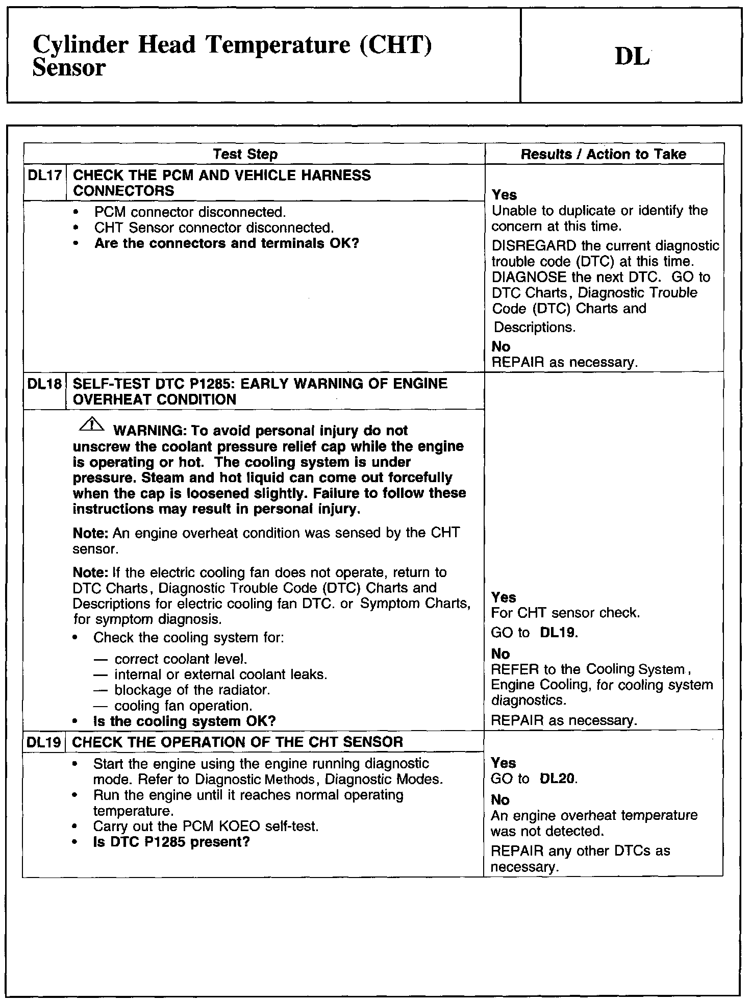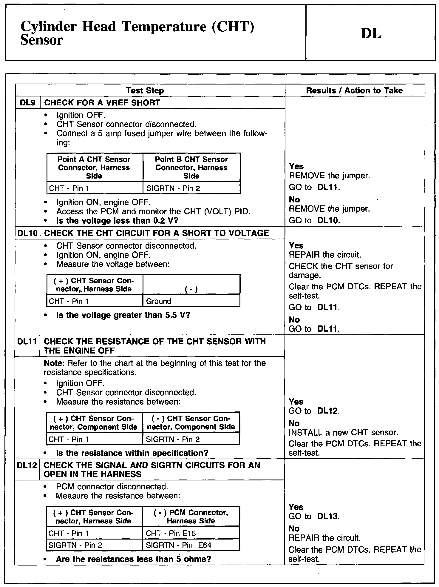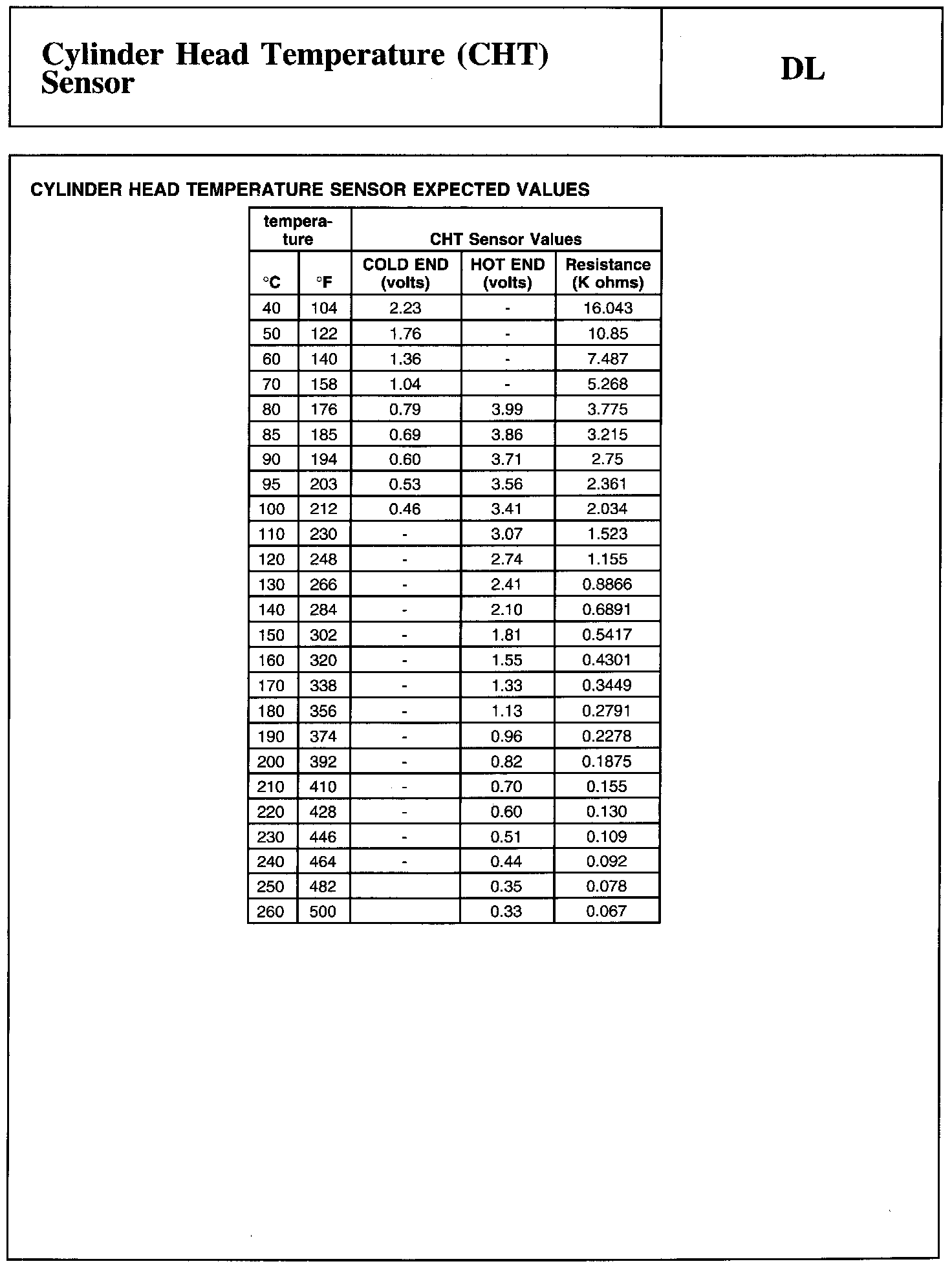 Cylinder Head Temperature Sensor Expected Values (Continued):