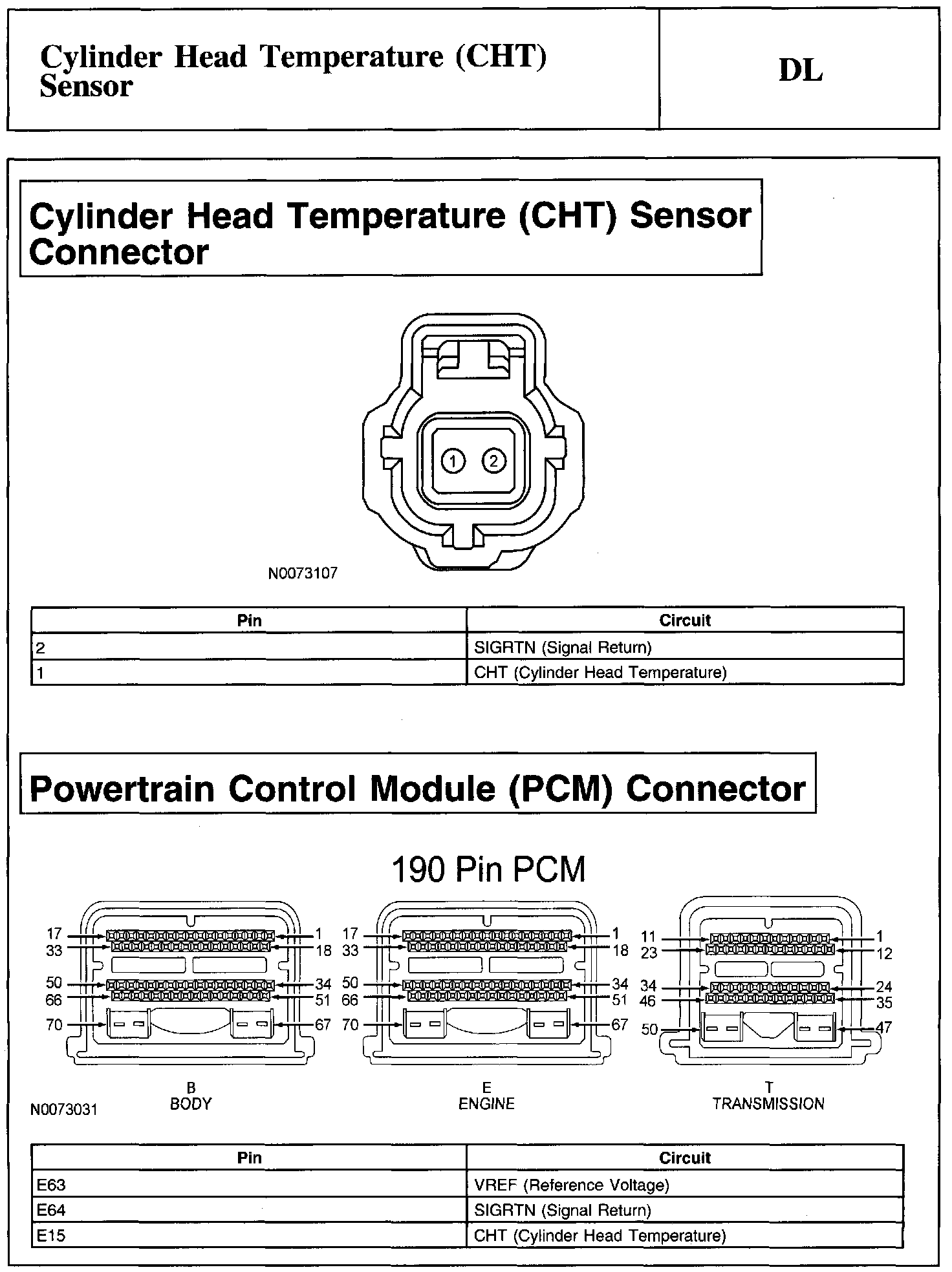 Cylinder Head Temperature (CHT) Sensor Connector And Powertrain Control Module (PCM) Connector: