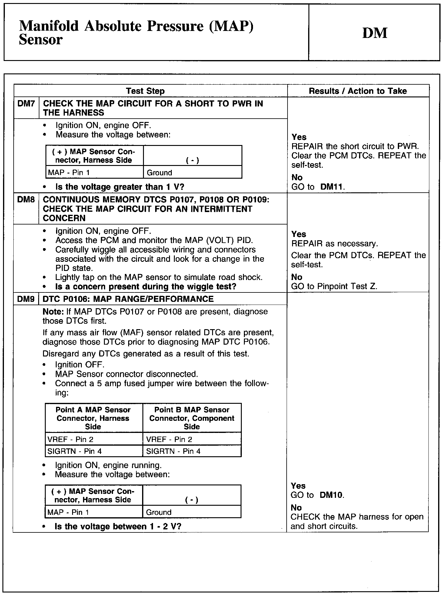 Test DM: Manifold Absolute Pressure (MAP) Sensor