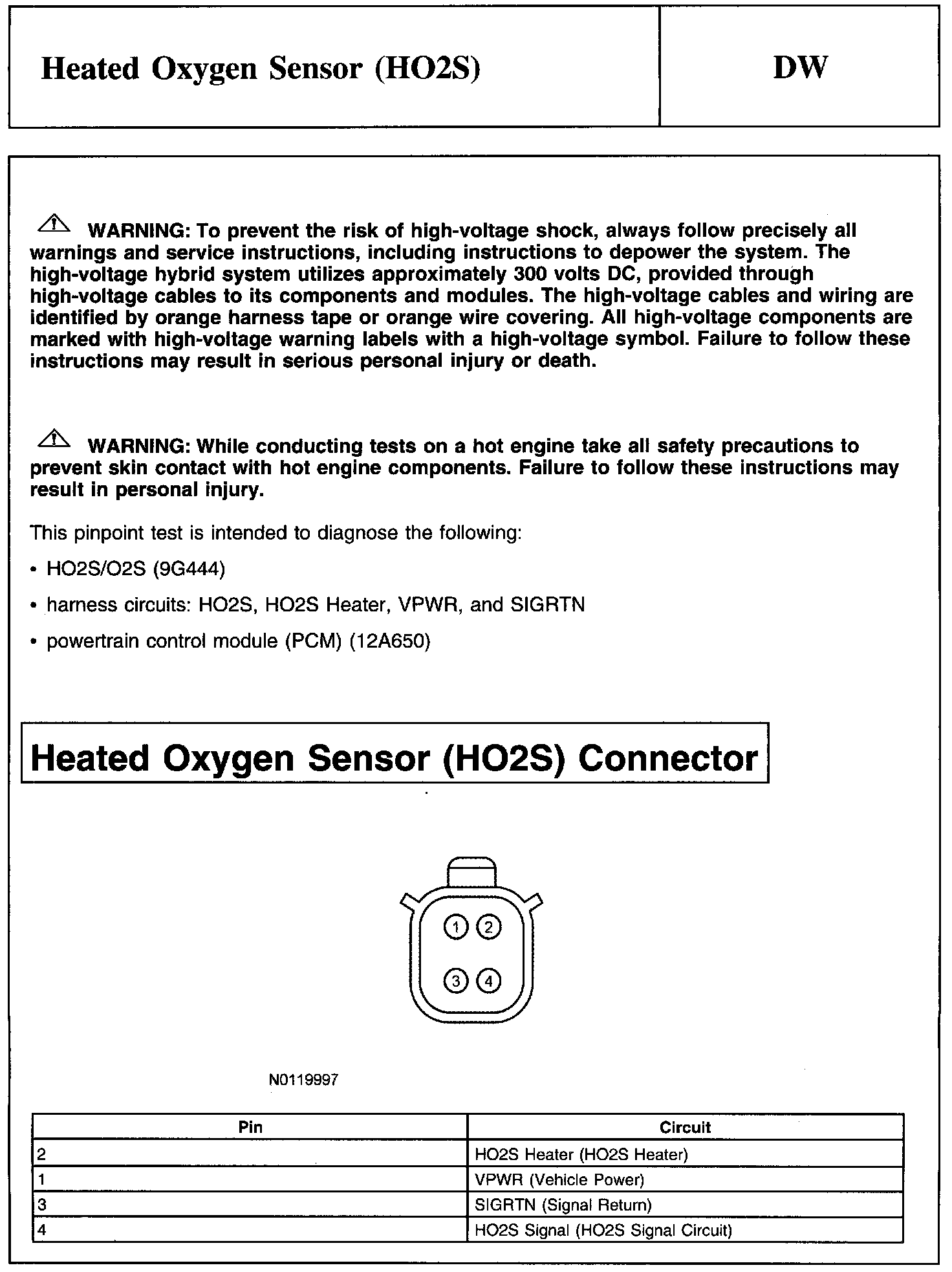 PINPOINT TEST DW: HEATED OXYGEN SENSOR (HO2S)