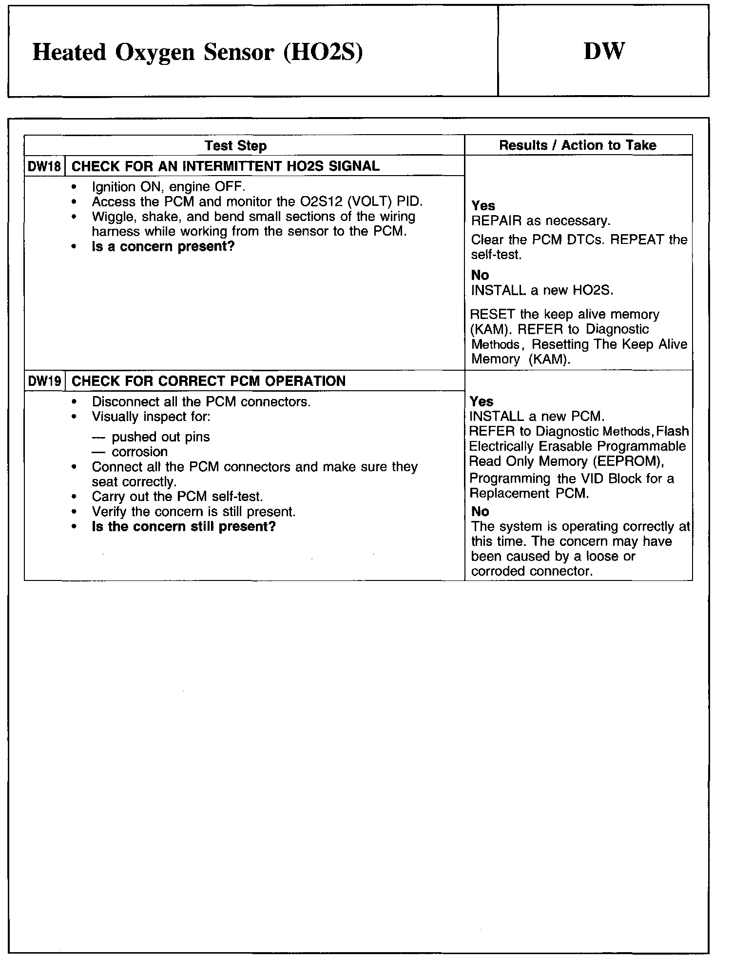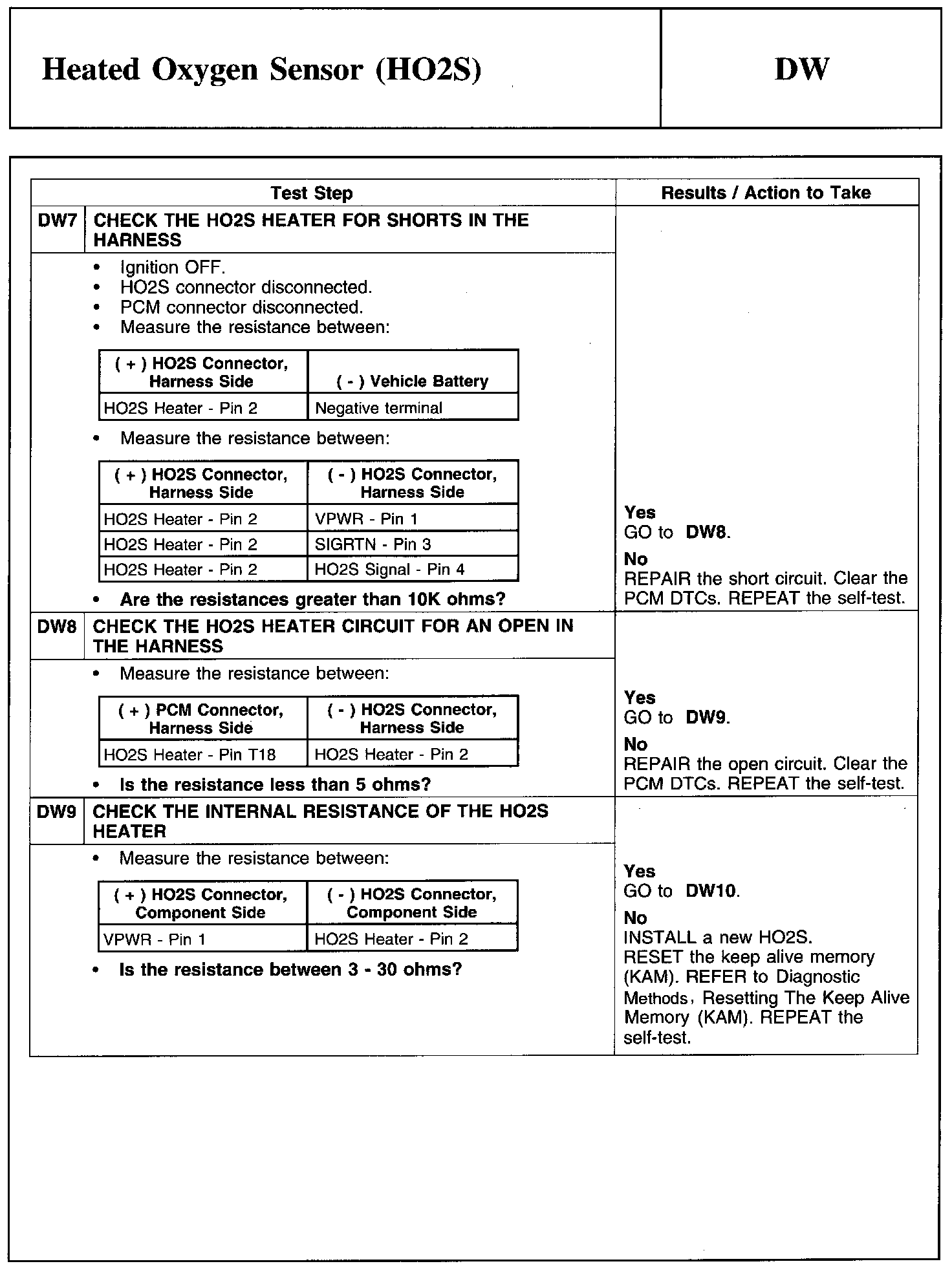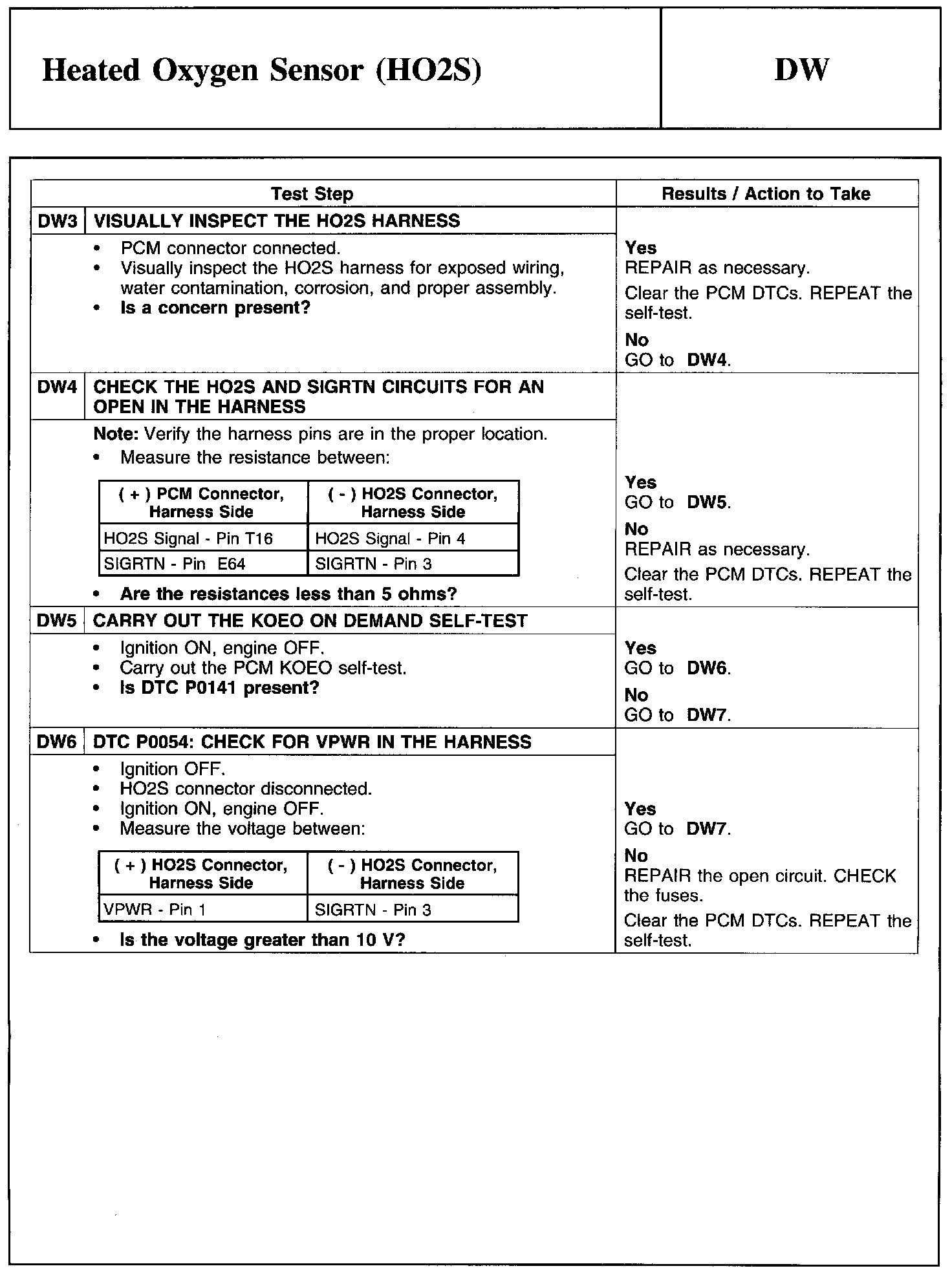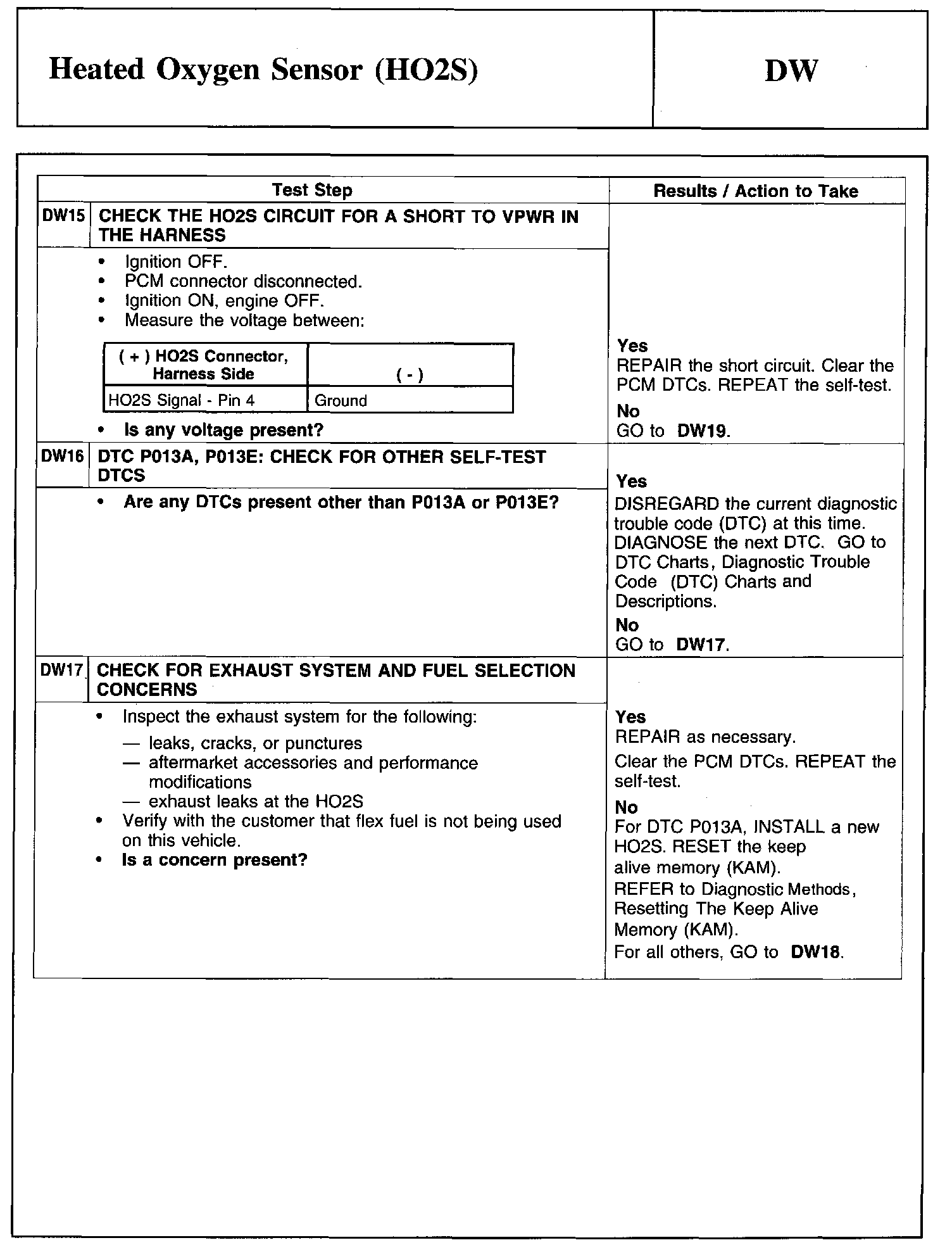 Test DW: Heated Oxygen Sensor (HO2S)