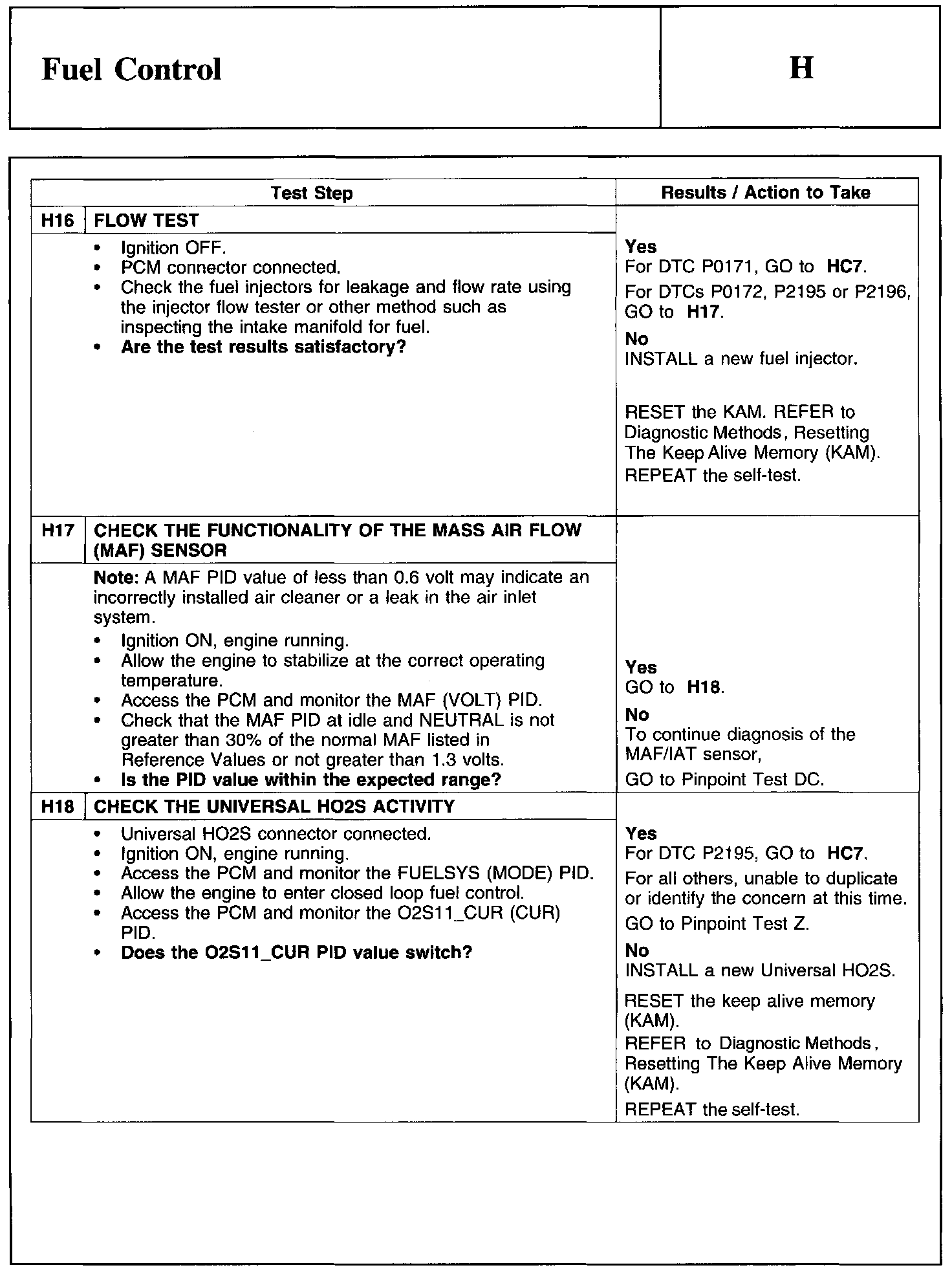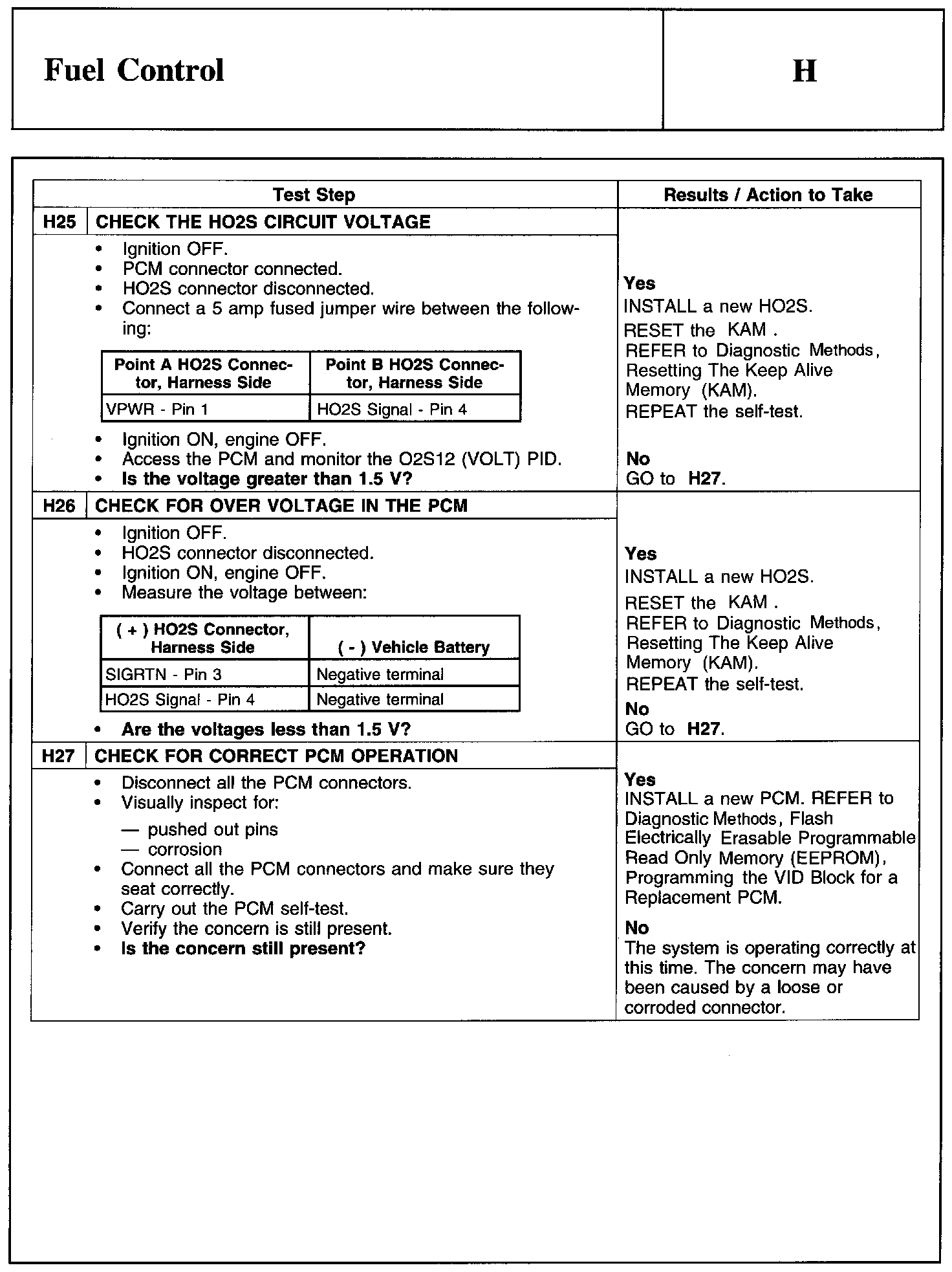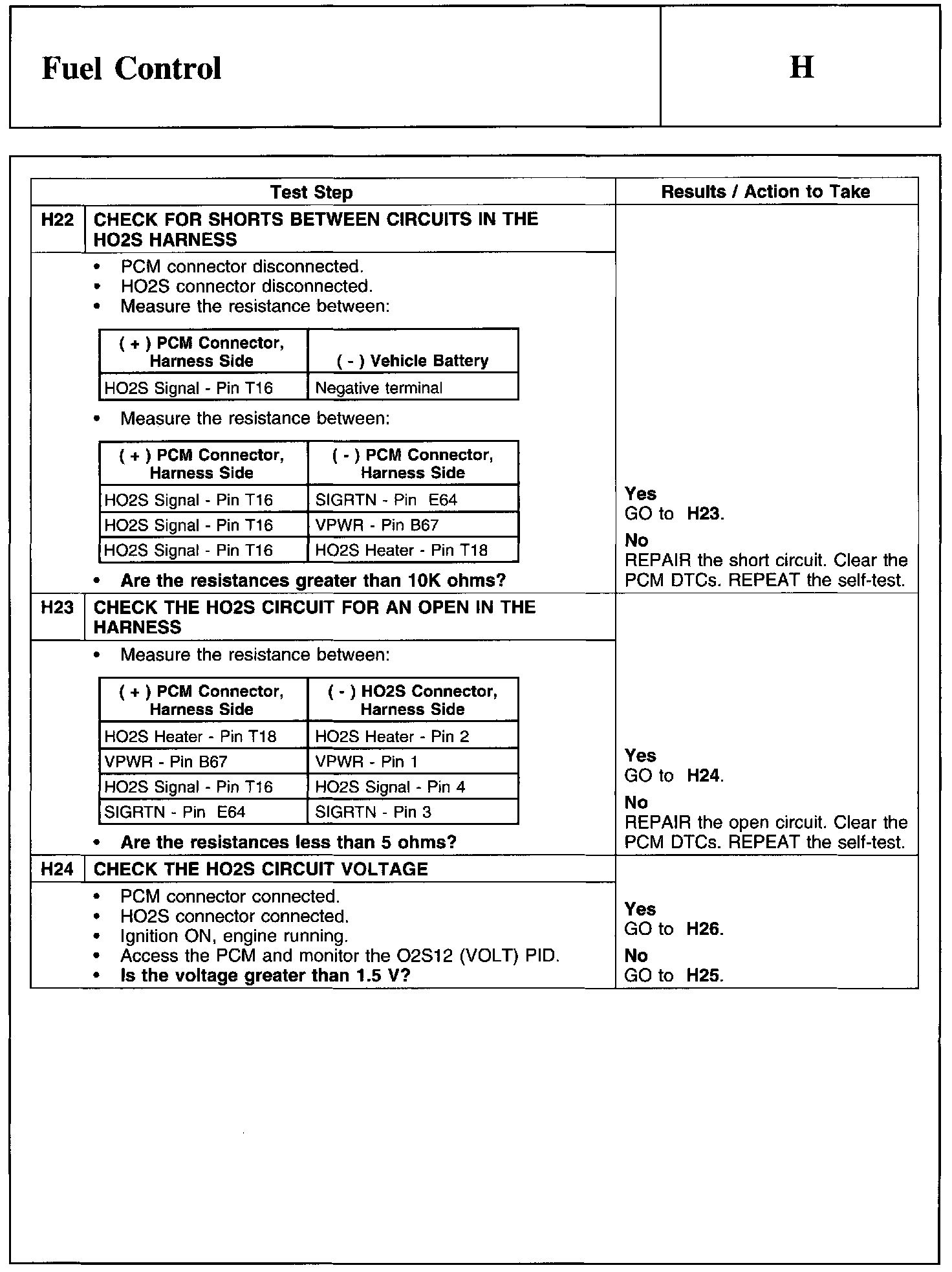 PINPOINT TEST H: FUEL CONTROLWarnings And Heated Oxygen Sensor (HO2S) Connector: