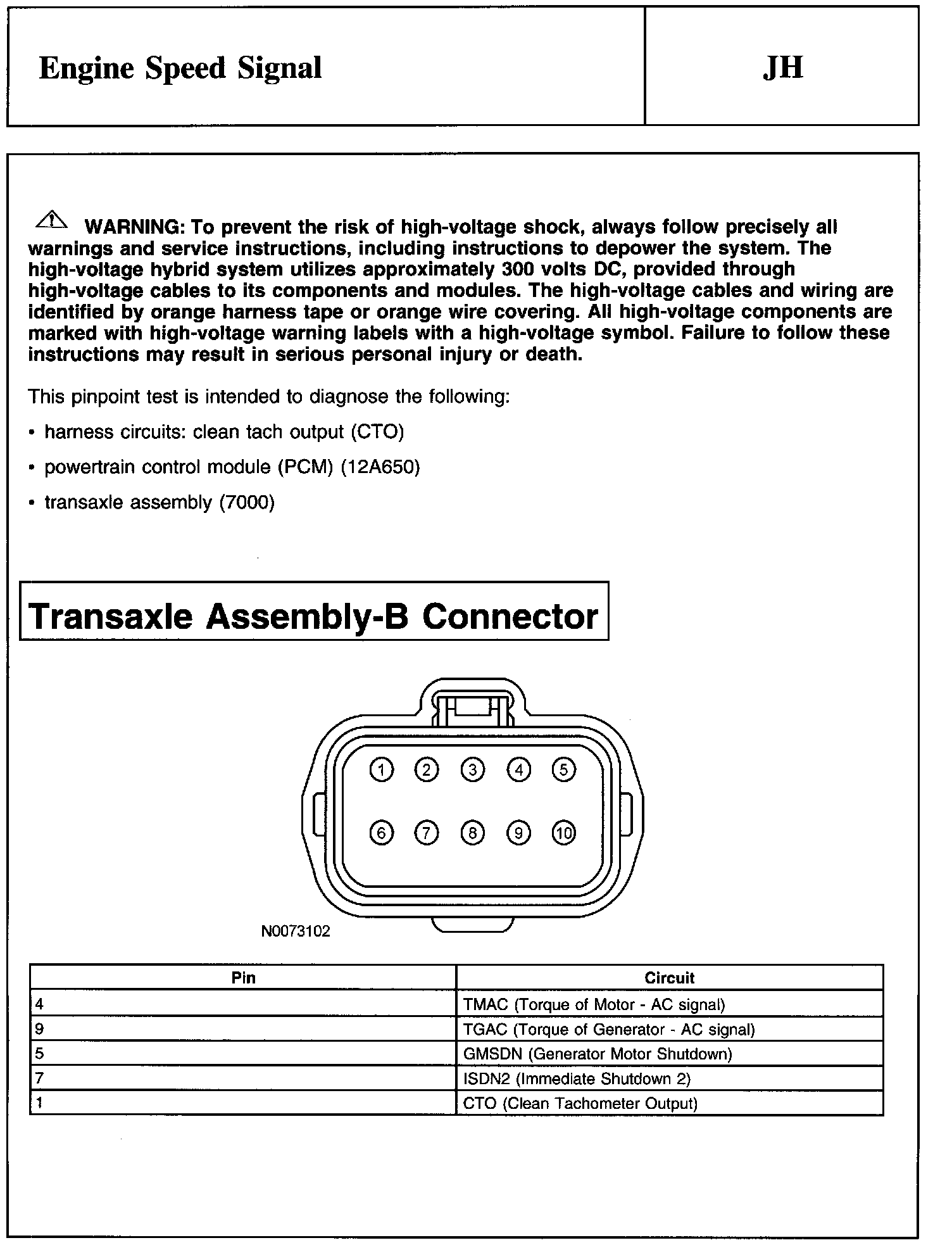 PINPOINT TEST JH: ENGINE SPEED SIGNAL