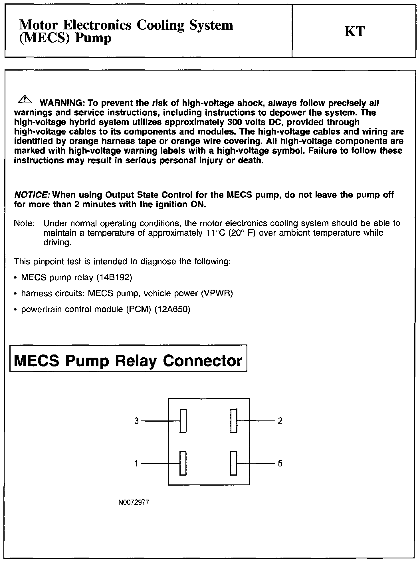 PINPOINT TEST KT: MOTOR ELECTRONICS COOLING SYSTEM (MECS) PUMP