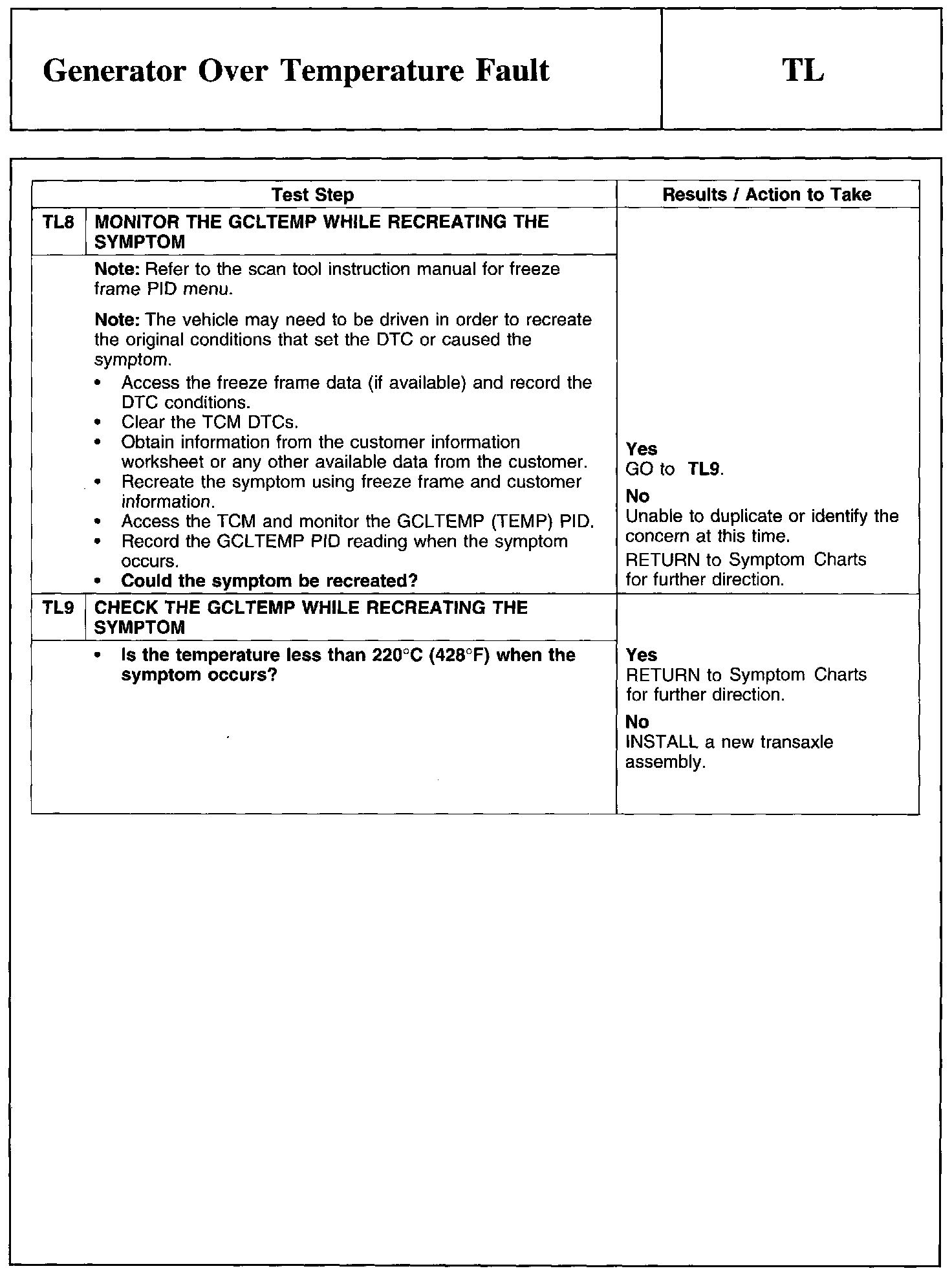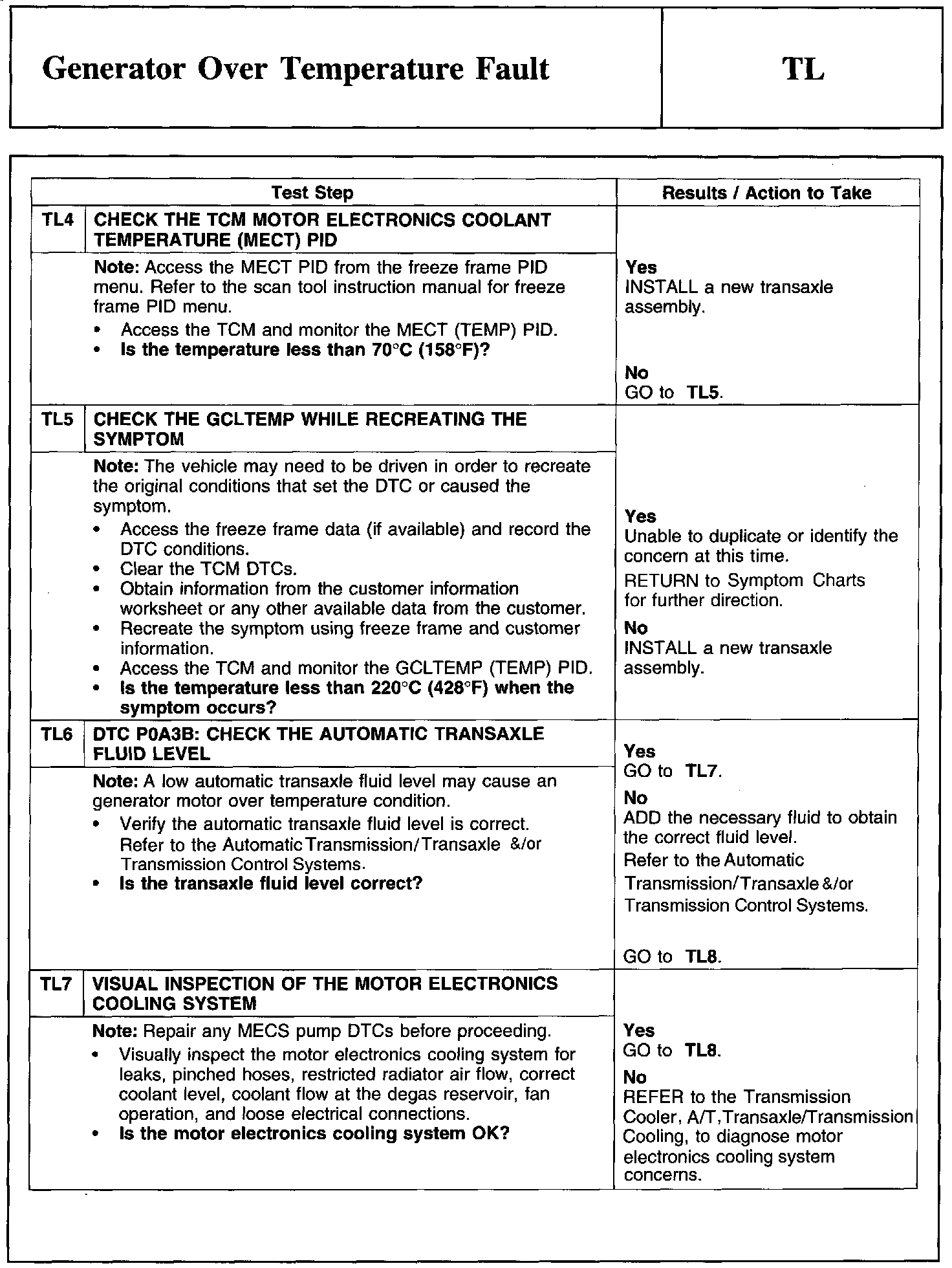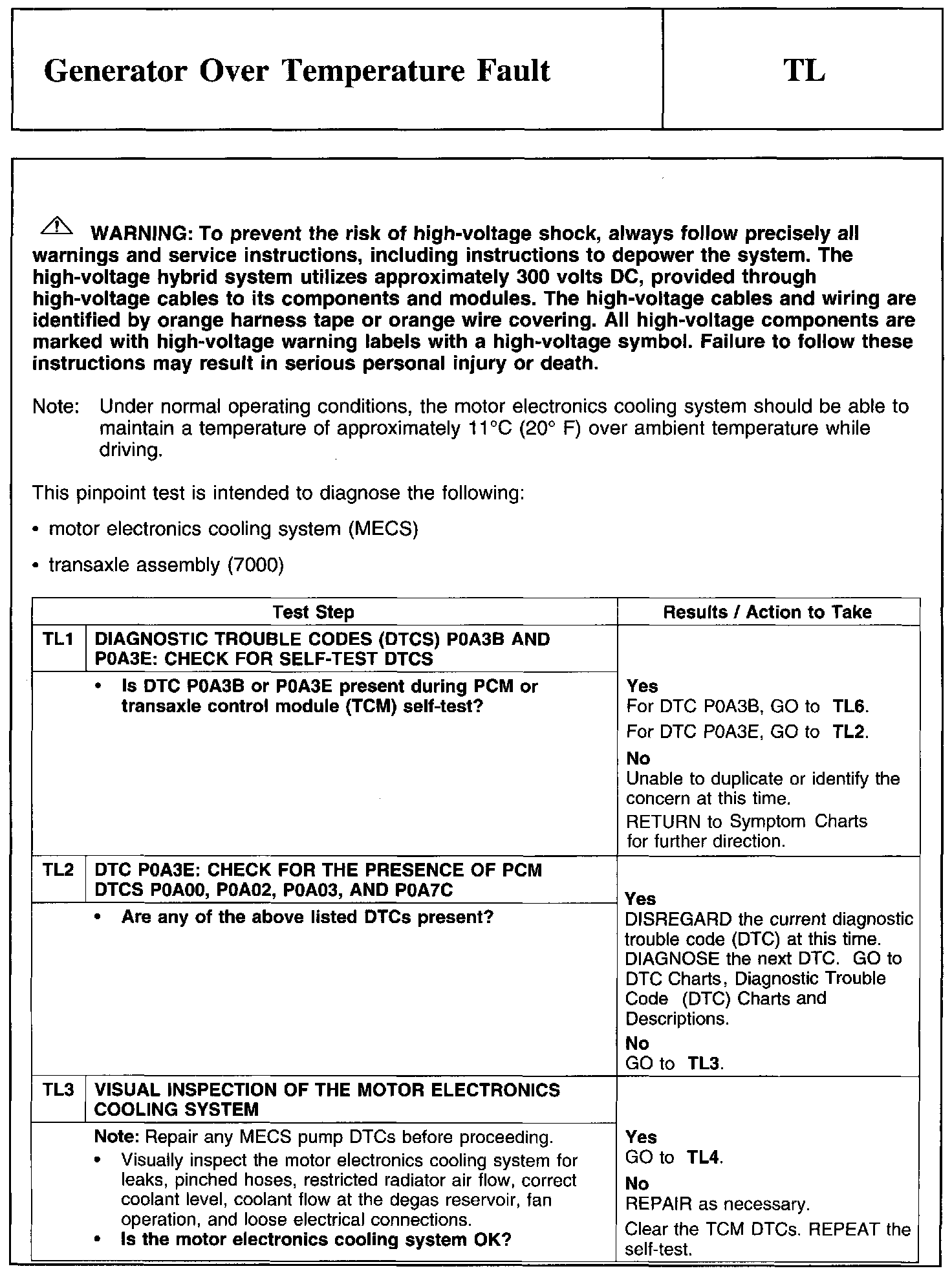 PINPOINT TEST TL: GENERATOR OVER TEMPERATURE FAULT