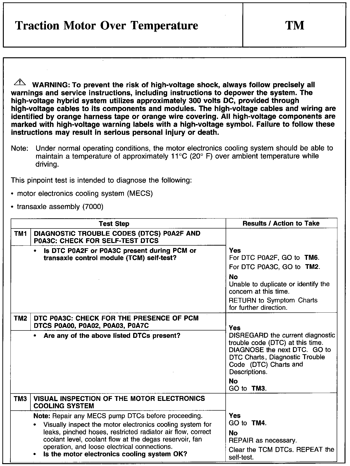 PINPOINT TEST TM: TRACTION MOTOR OVER TEMPERATURE