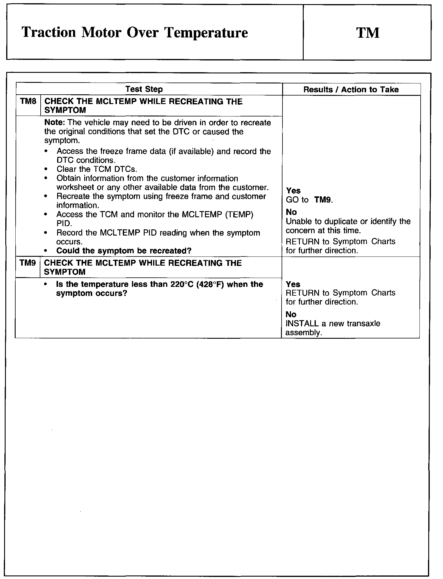 Test TM: Traction Motor Over Temperature