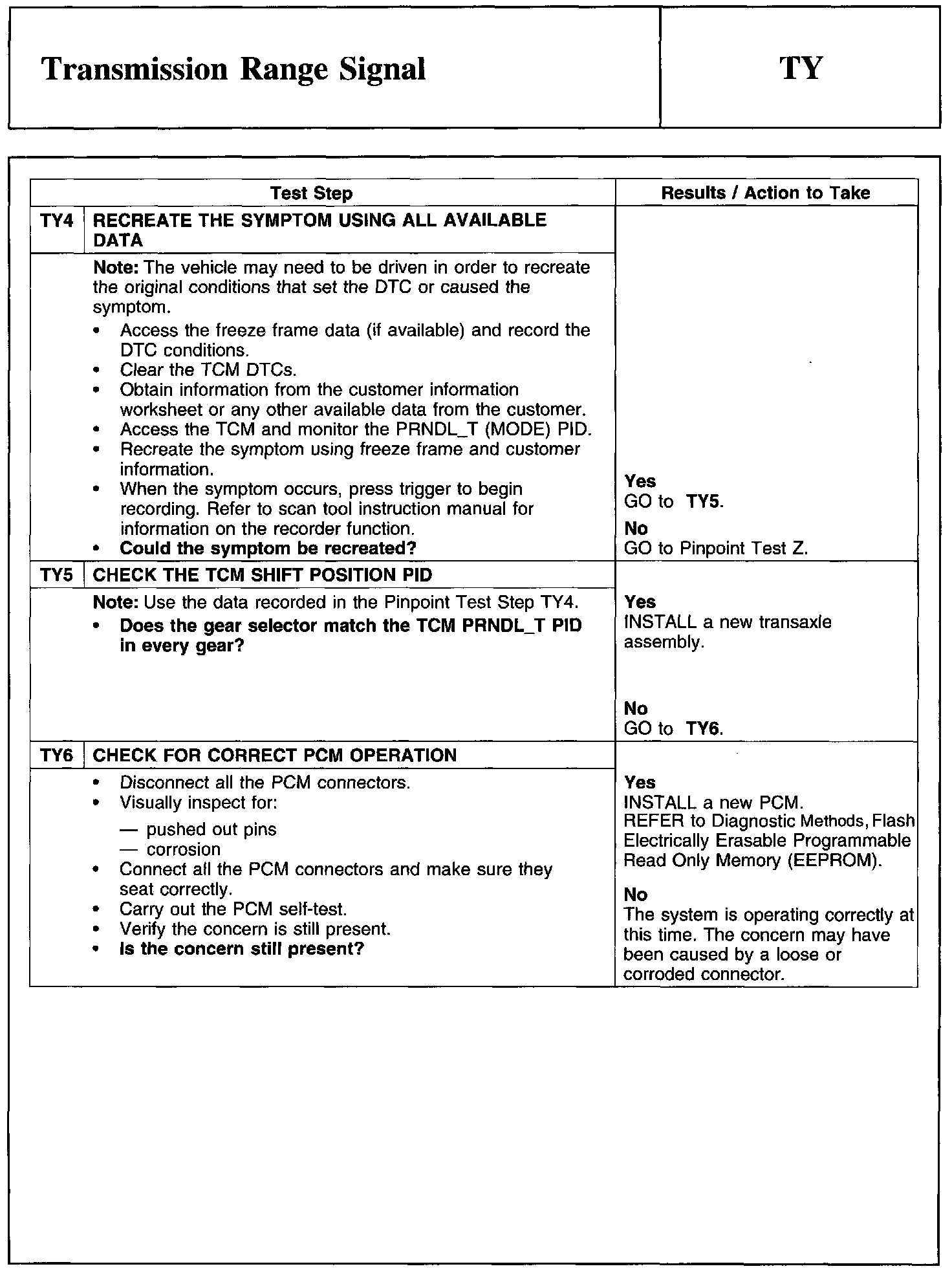 Test TY: Transmission Range Signal