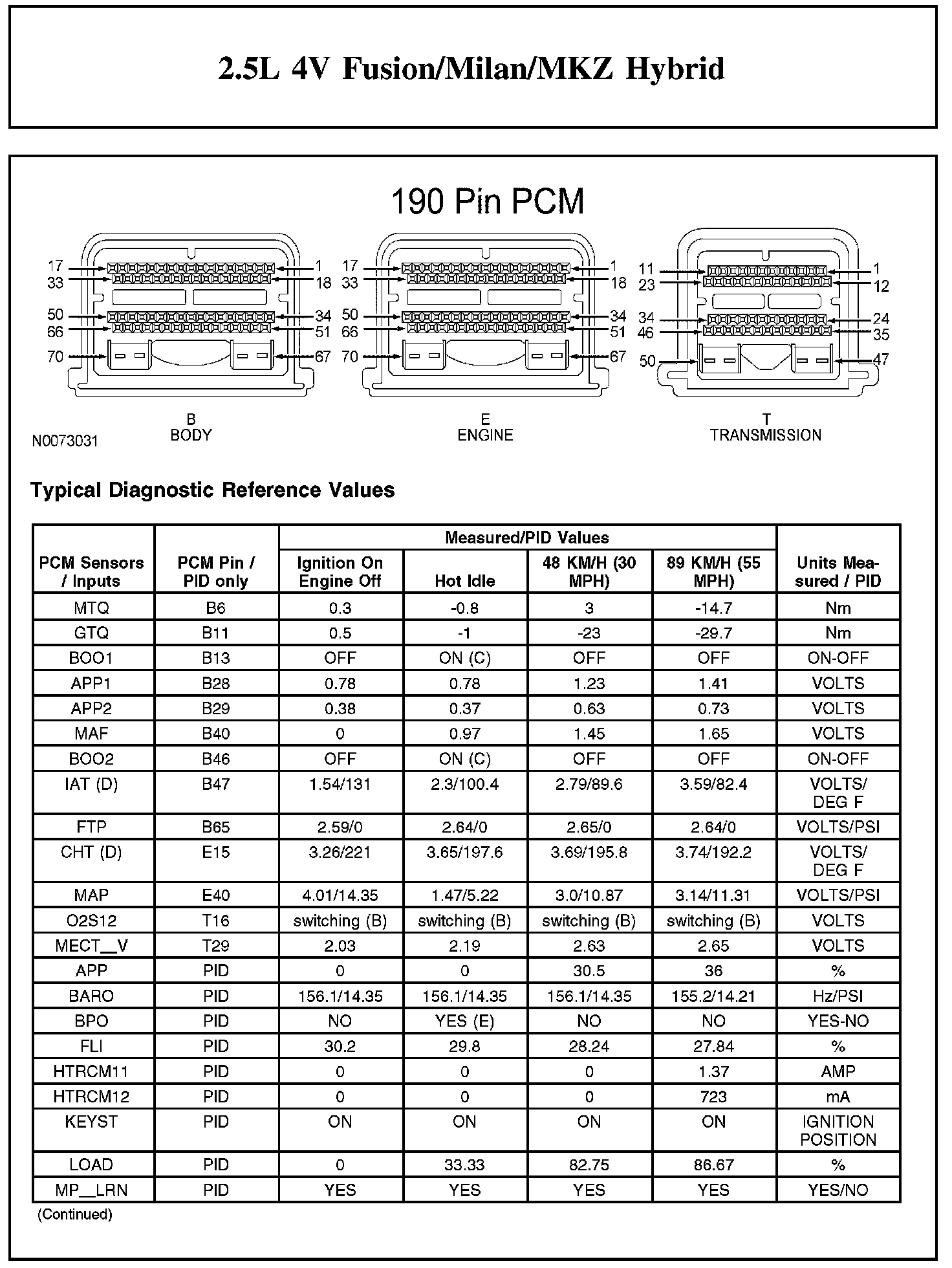 2.5L 4V FUSION/MILAN/MKZ HYBRID