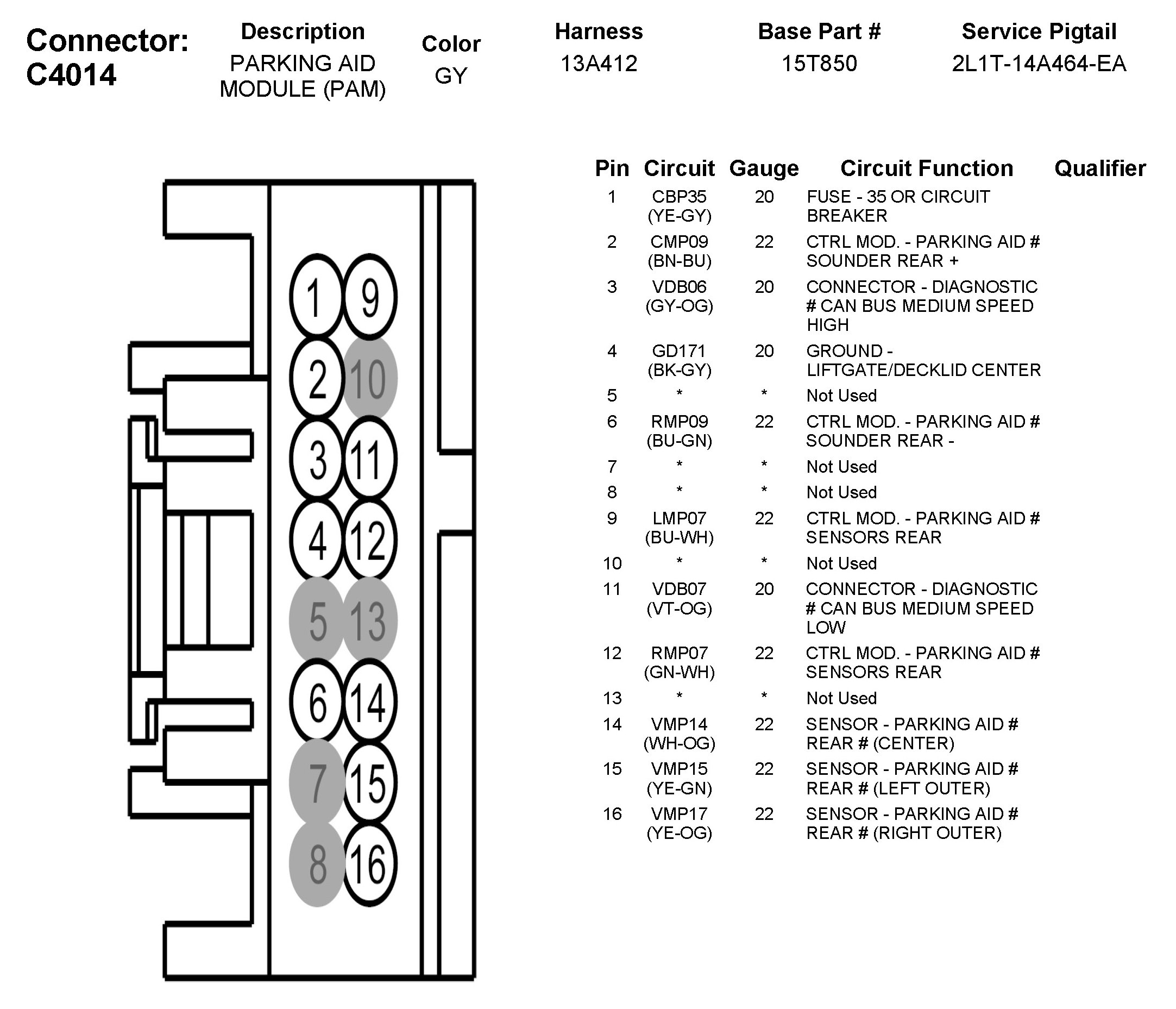 Parking Assist Control Module: Diagrams