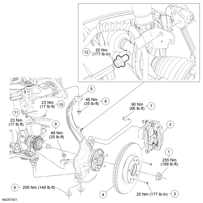 - Tighten to 48 Nm (35 lb-ft).