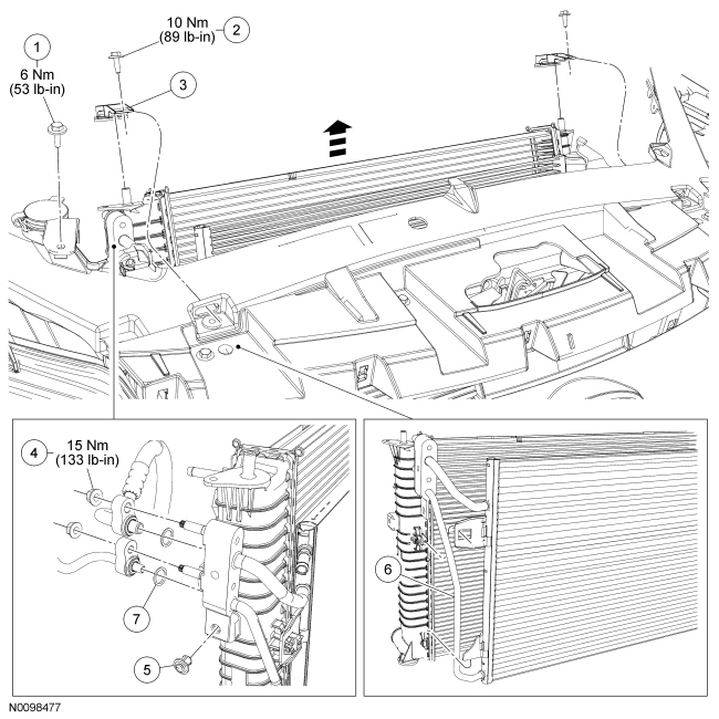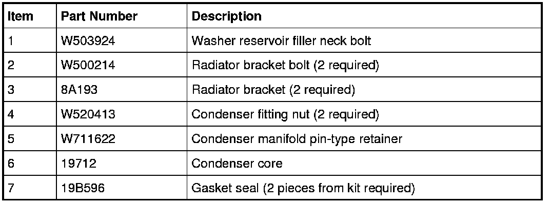 9. Detach the 2 condenser core retaining clips and detach the condenser core from the radiator.