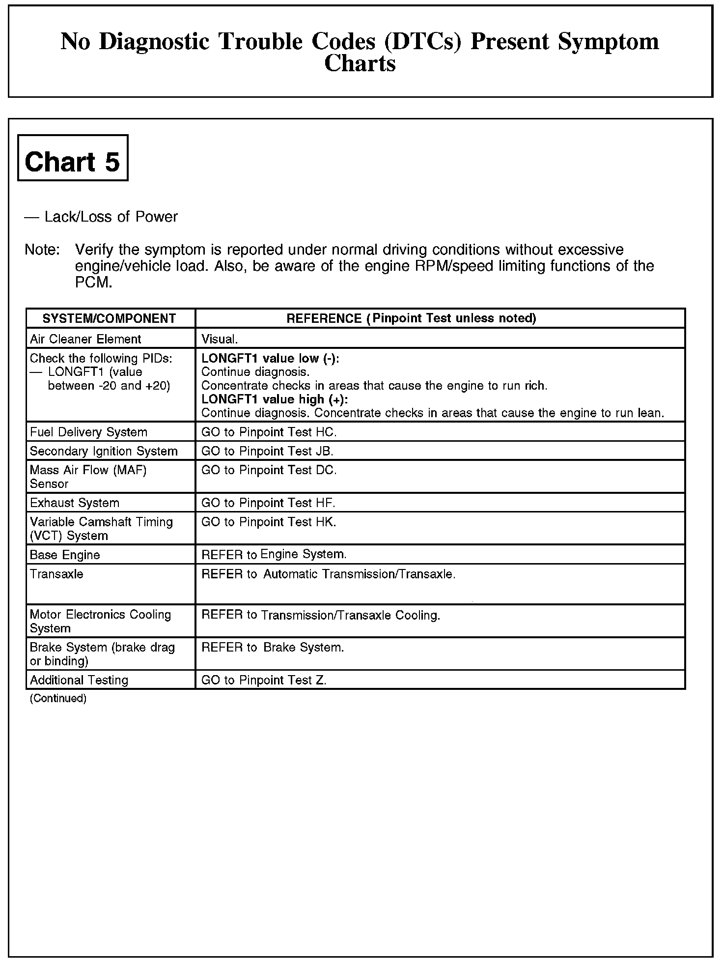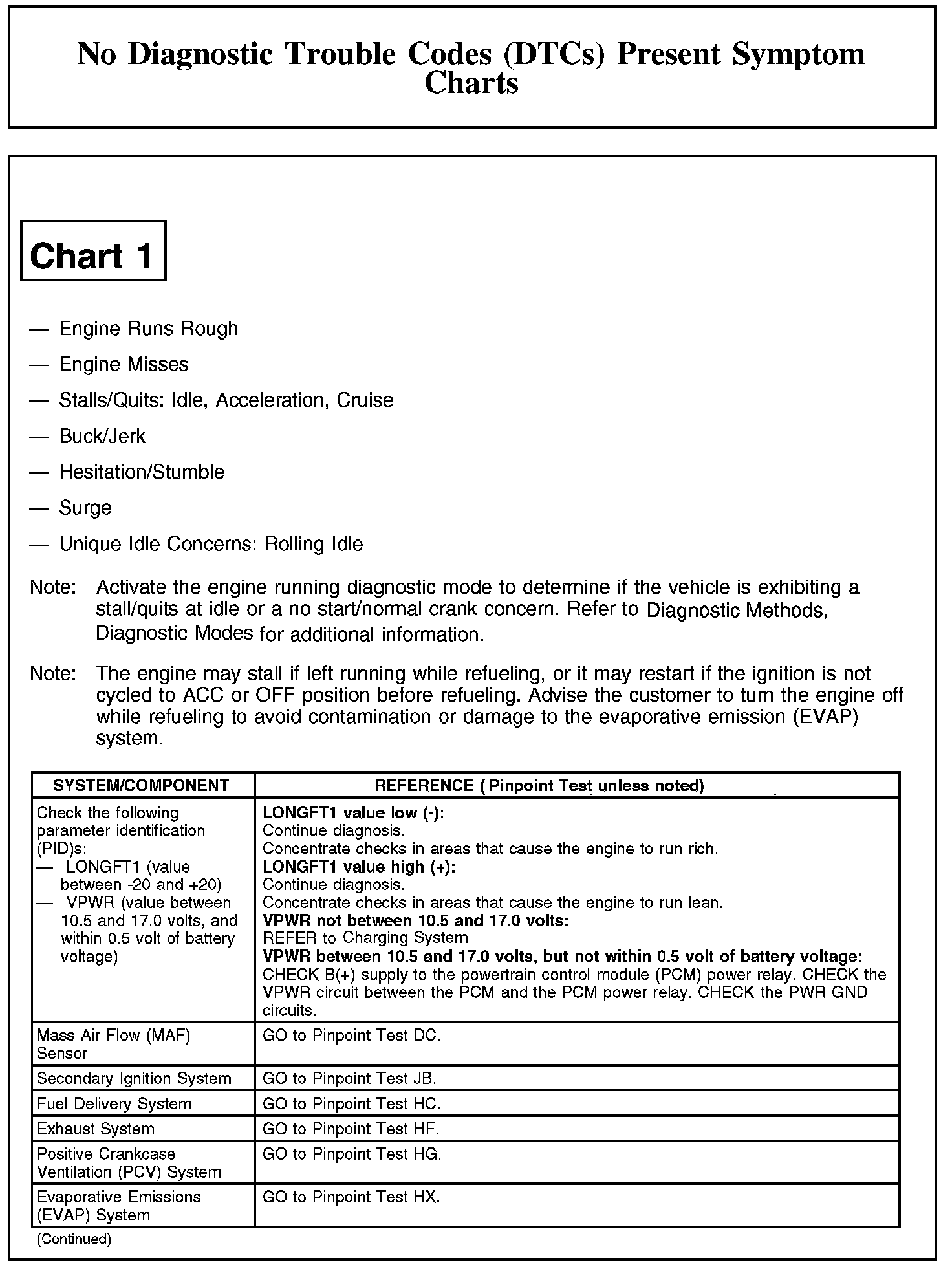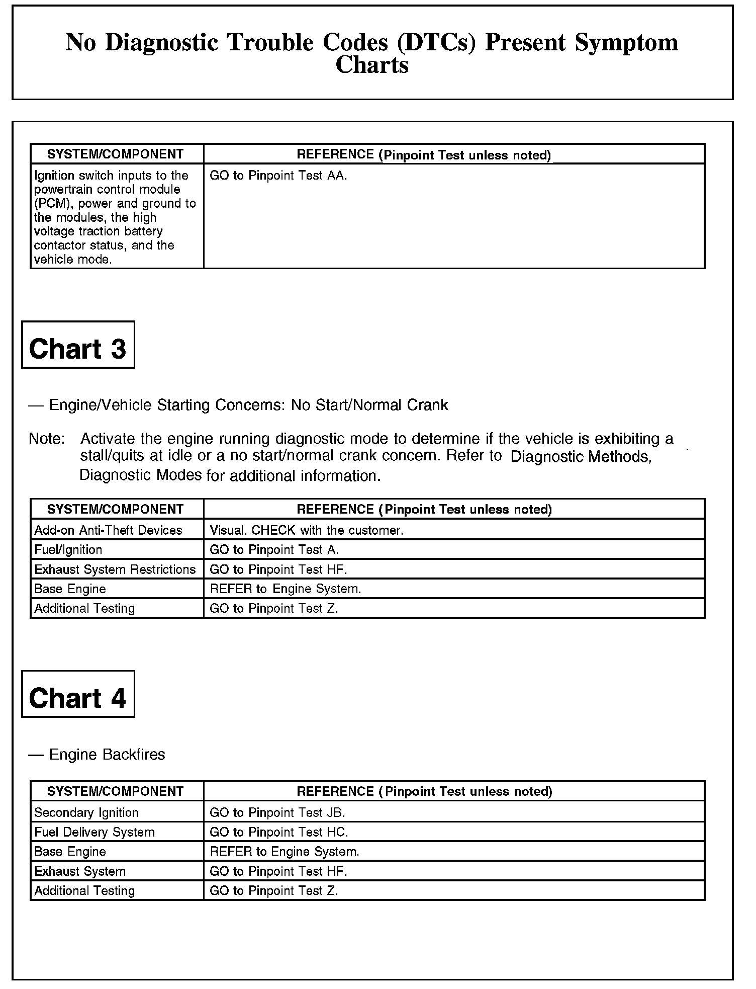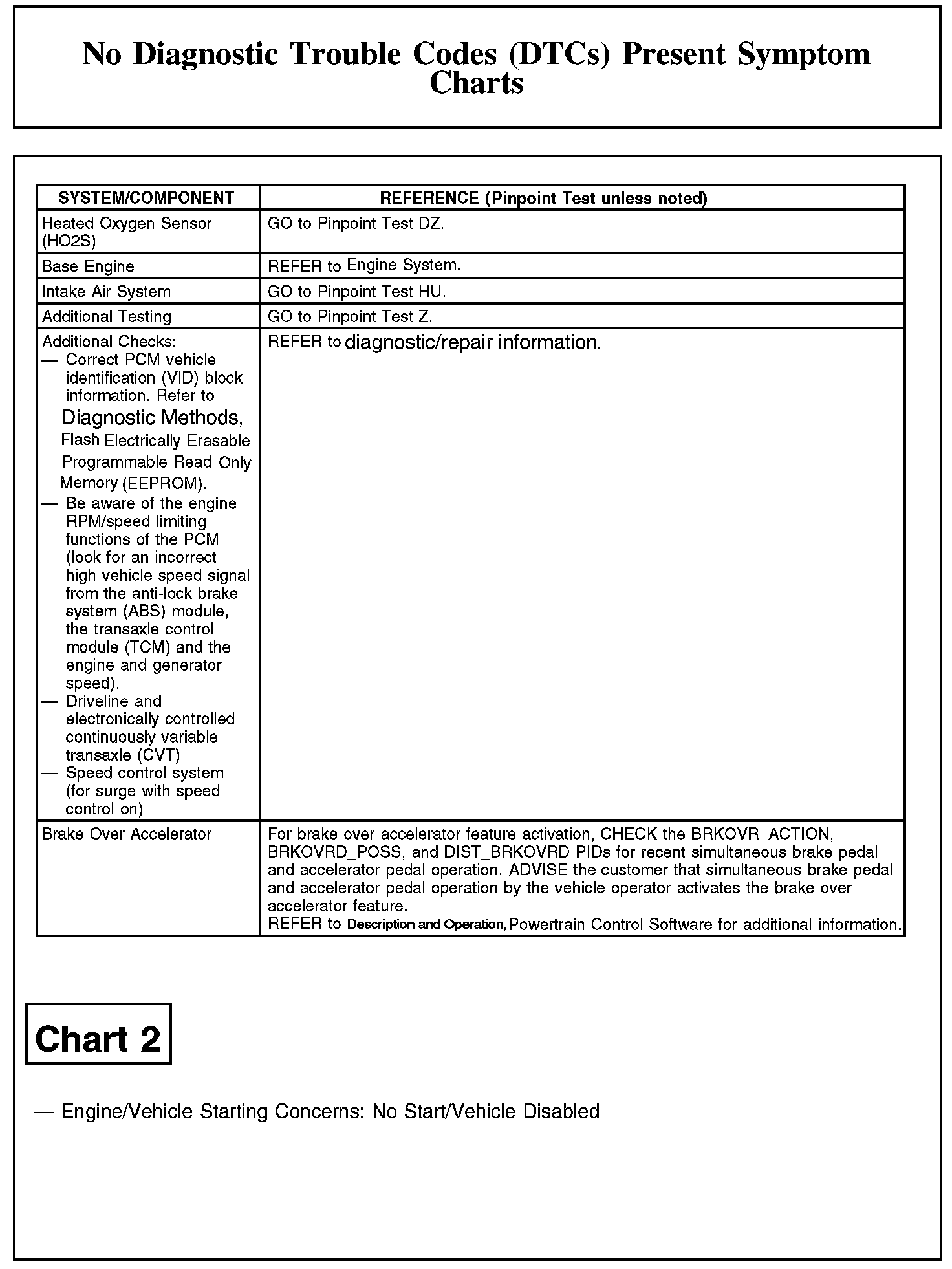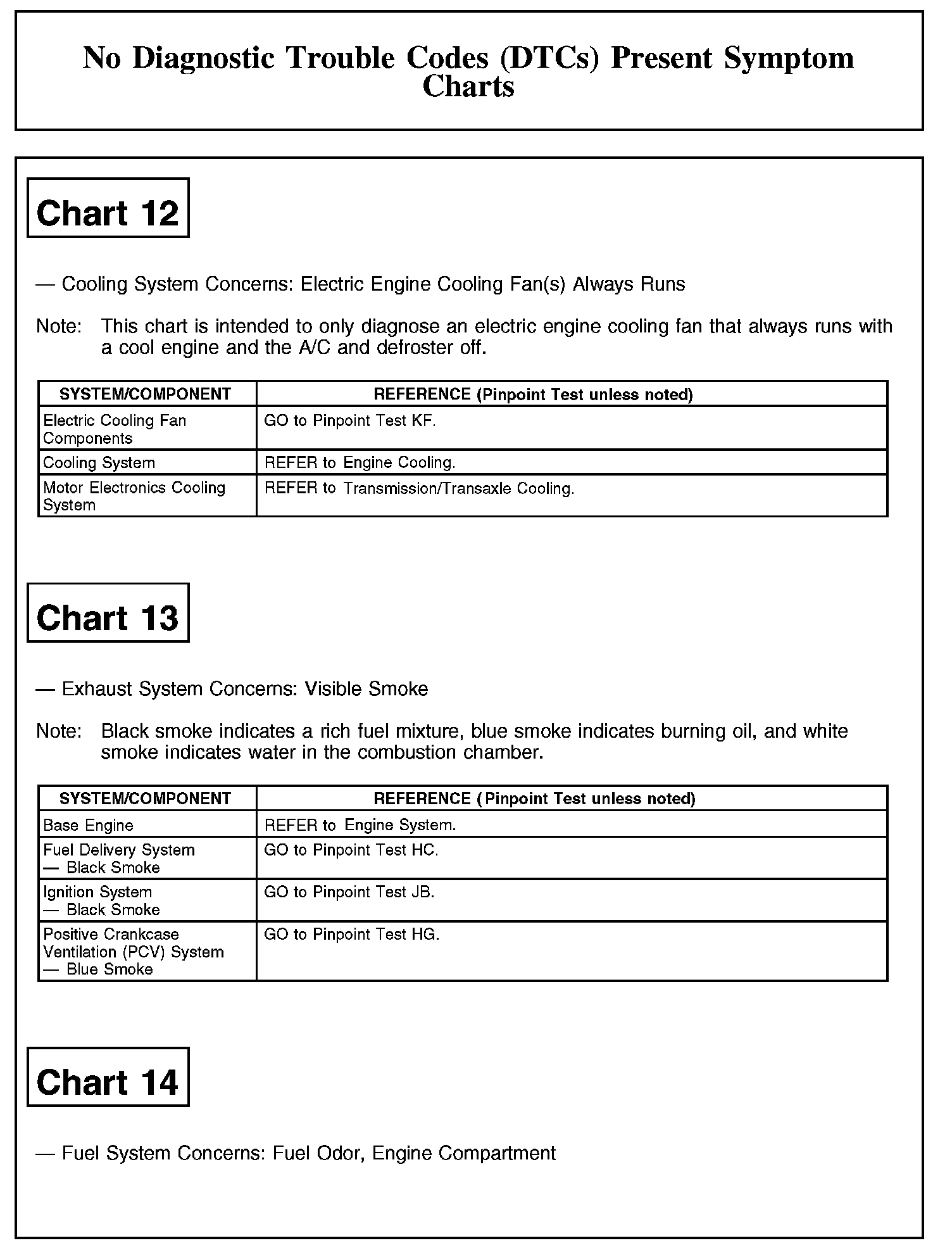 No Diagnostic Trouble Codes (DTCs) Present Symptom Charts