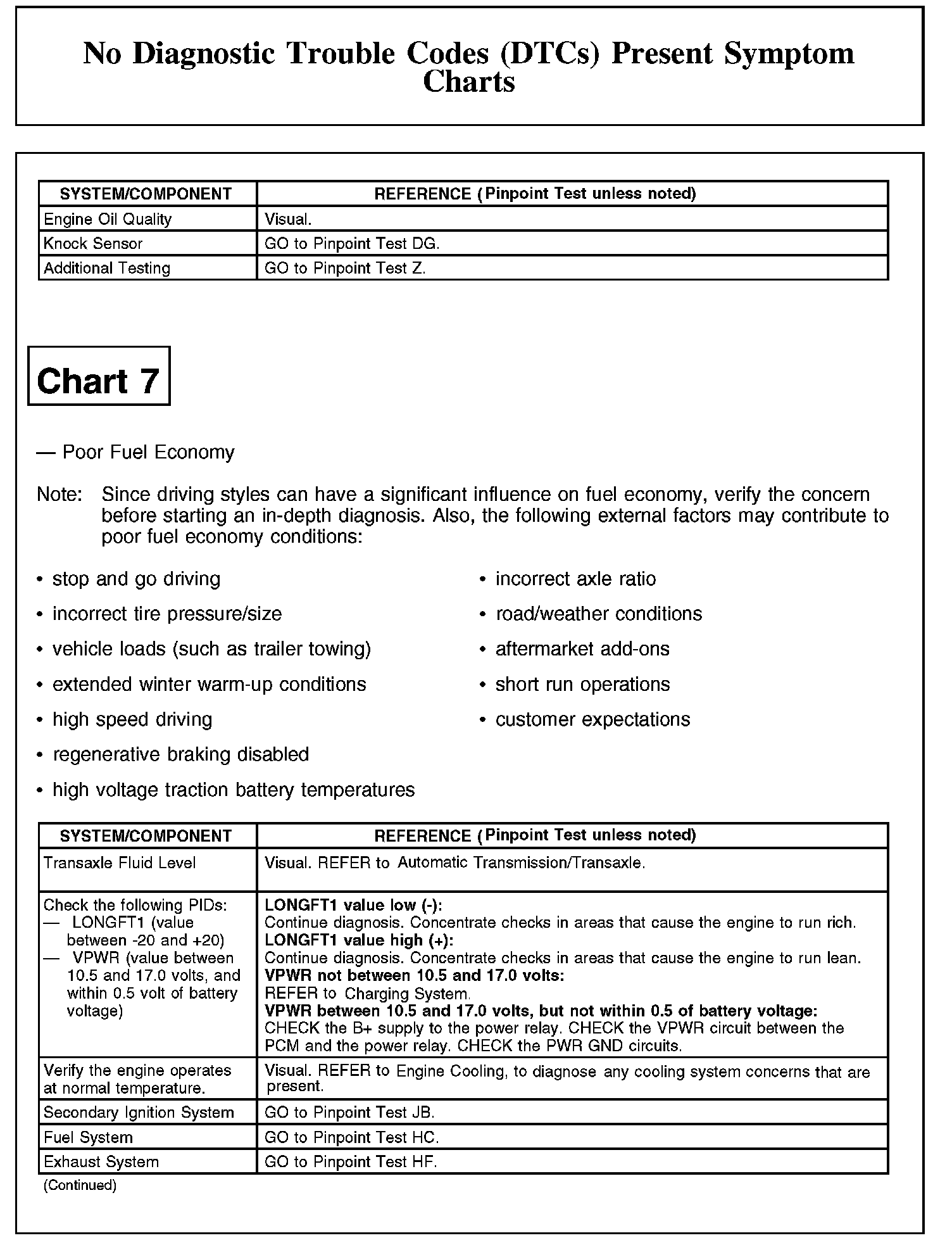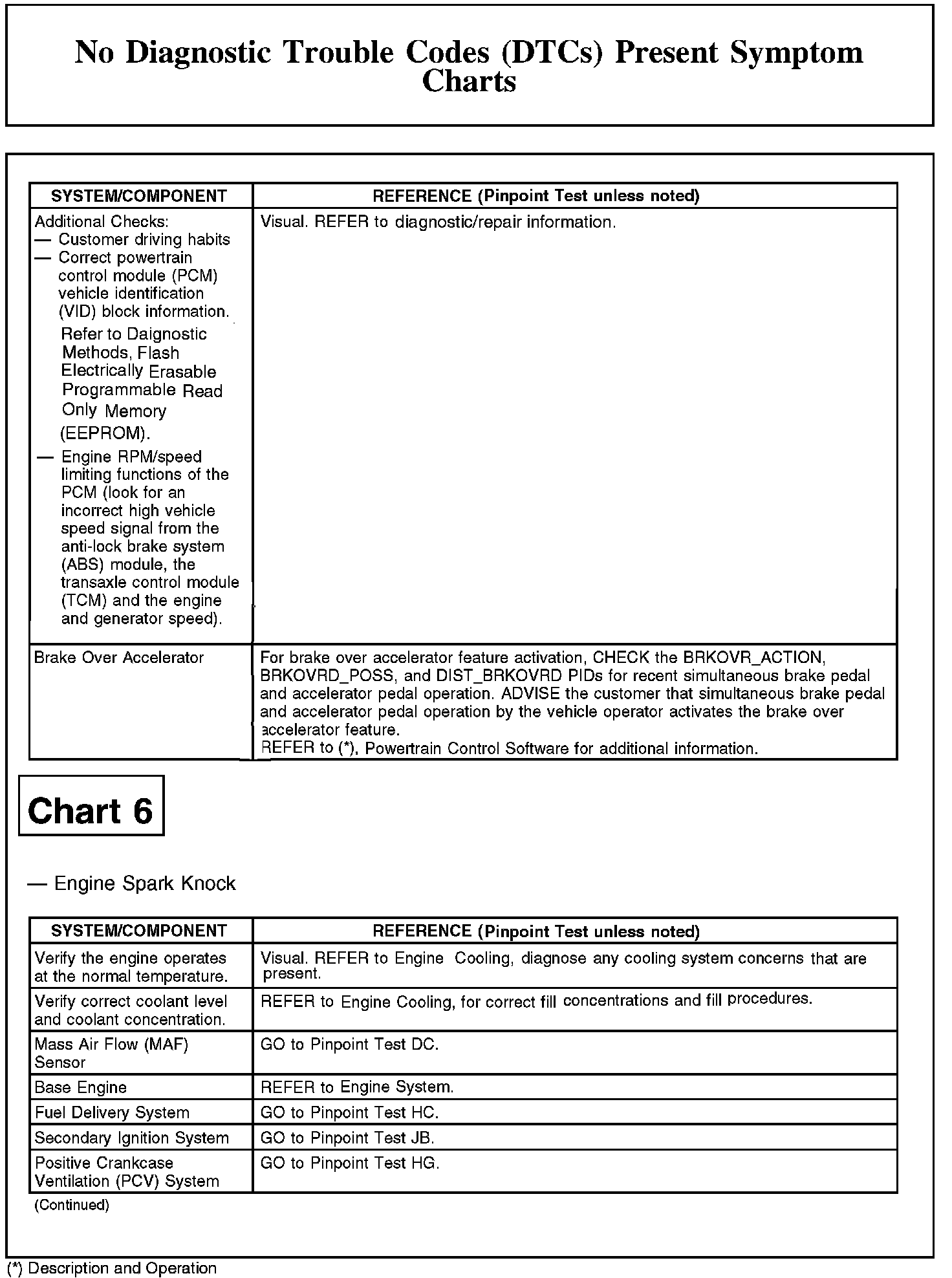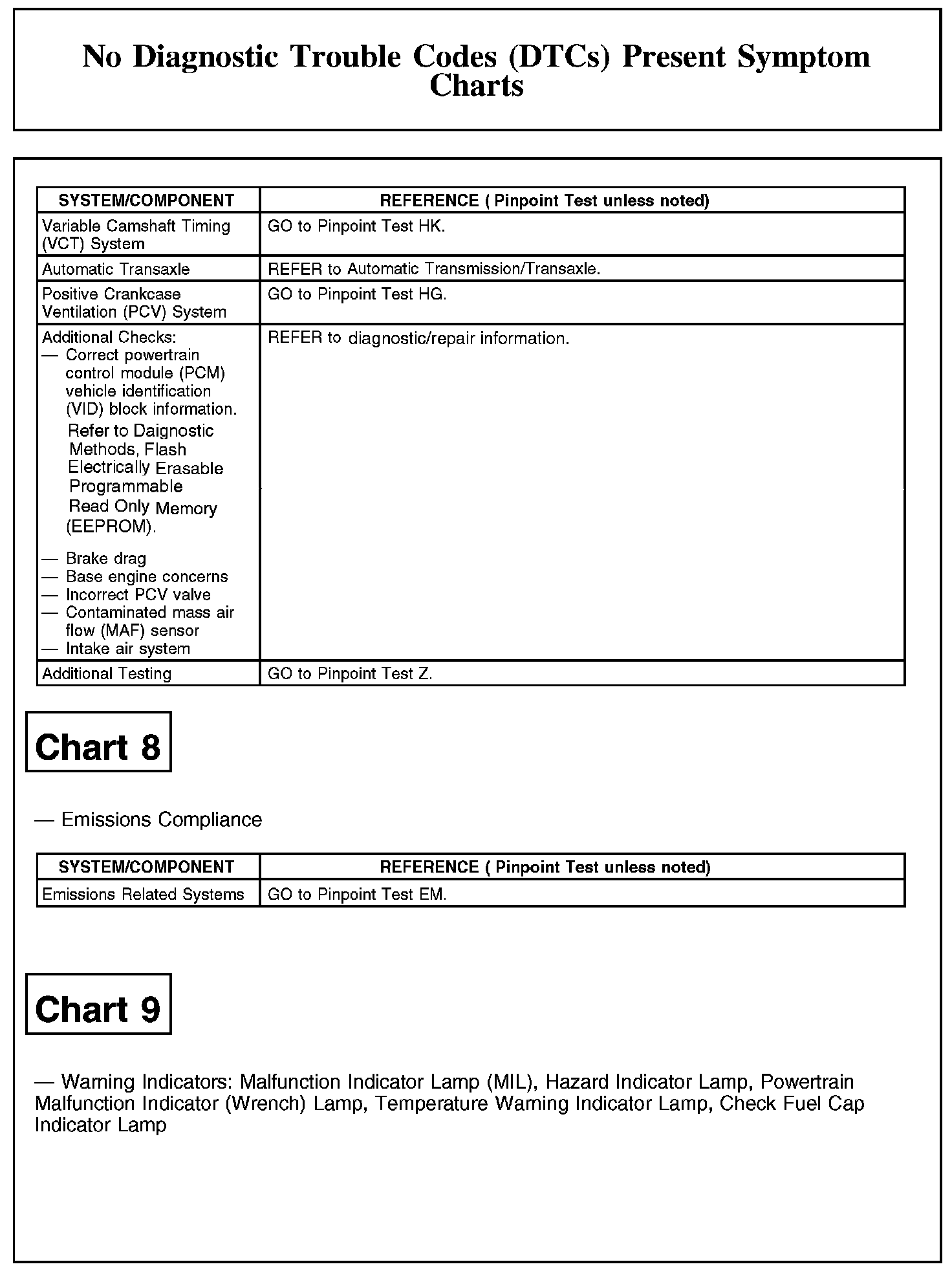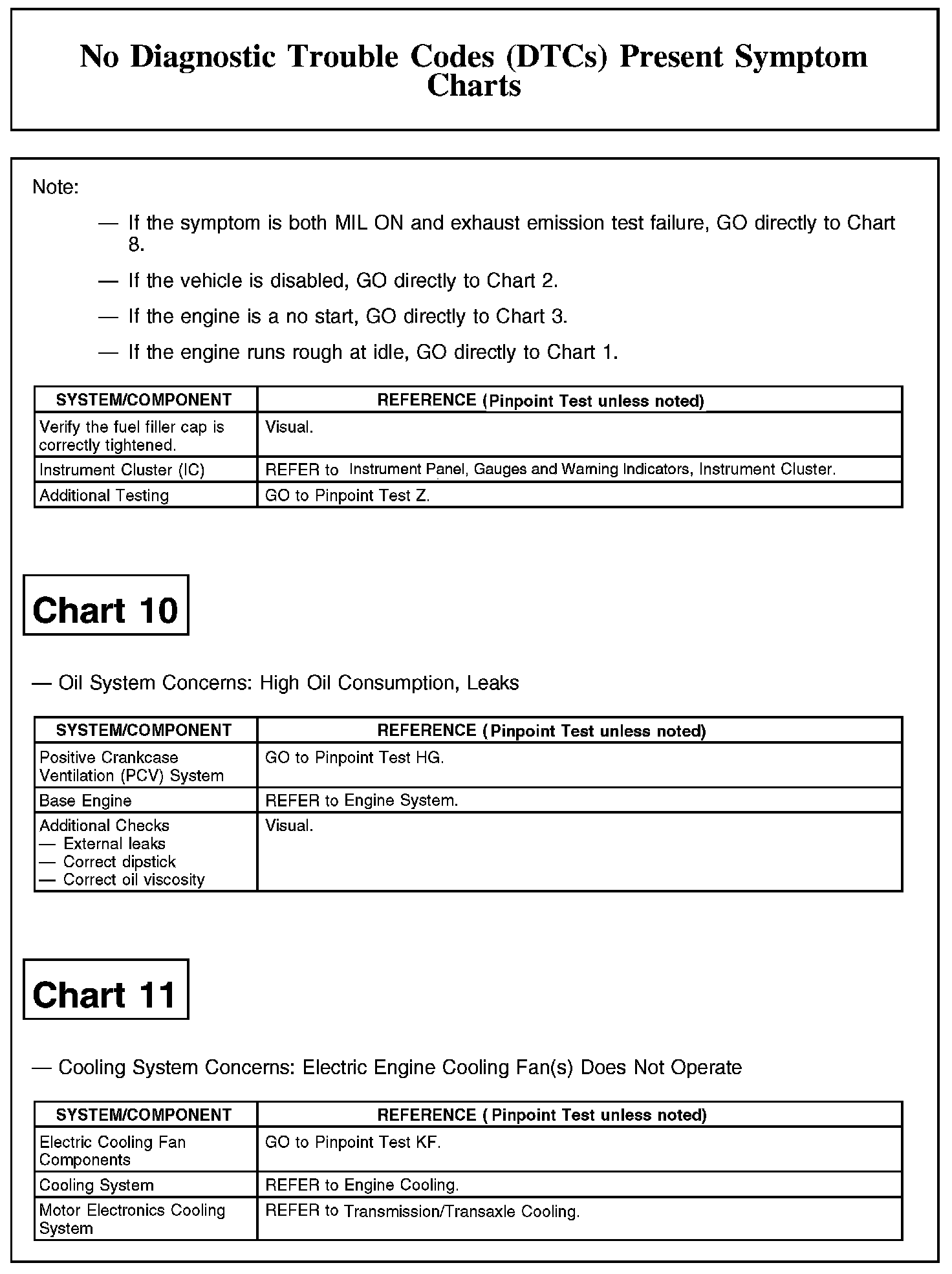 NO DIAGNOSTIC TROUBLE CODES (DTCs) PRESENT SYMPTOM CHARTS