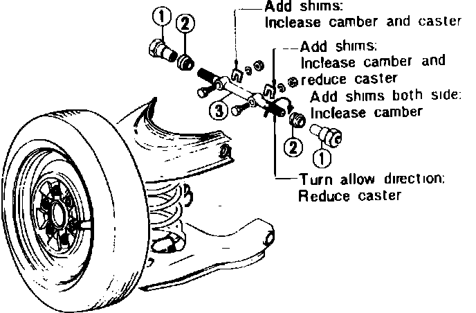 Fig. 1 Adjusting caster & camber. 1984 B2000 & B2200: