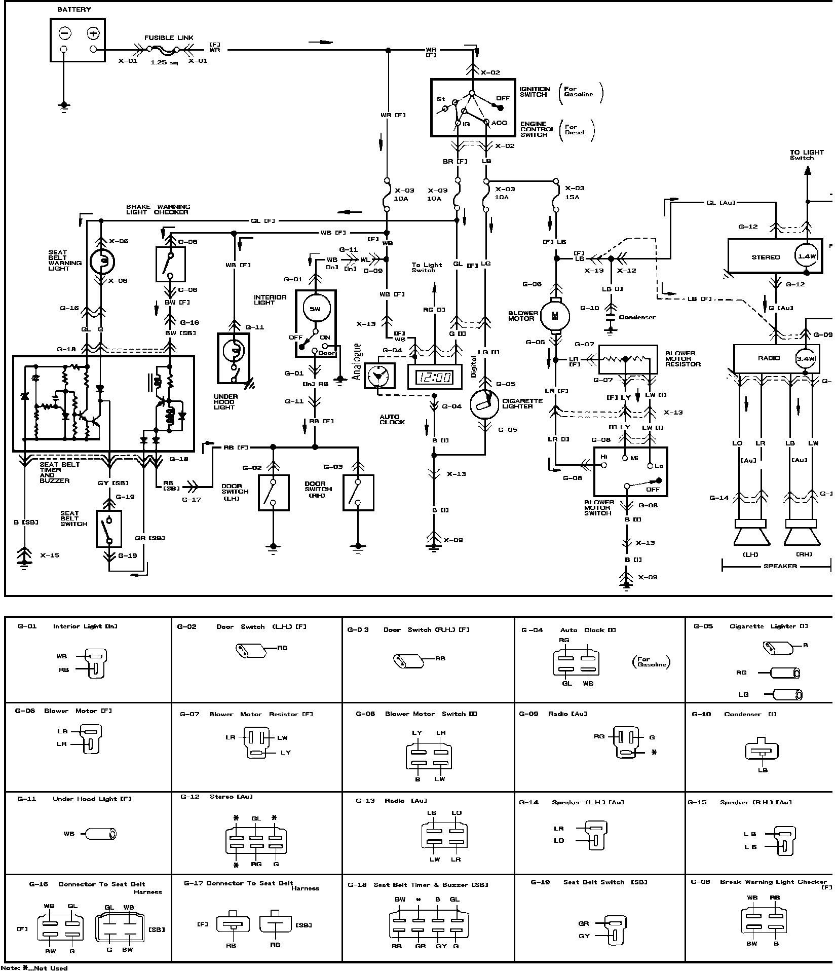 <��Fig. 85b Cigarette Lighter, Clock, Heater, Interior Light, Radio, Seat Belt Warning System & Stereo: