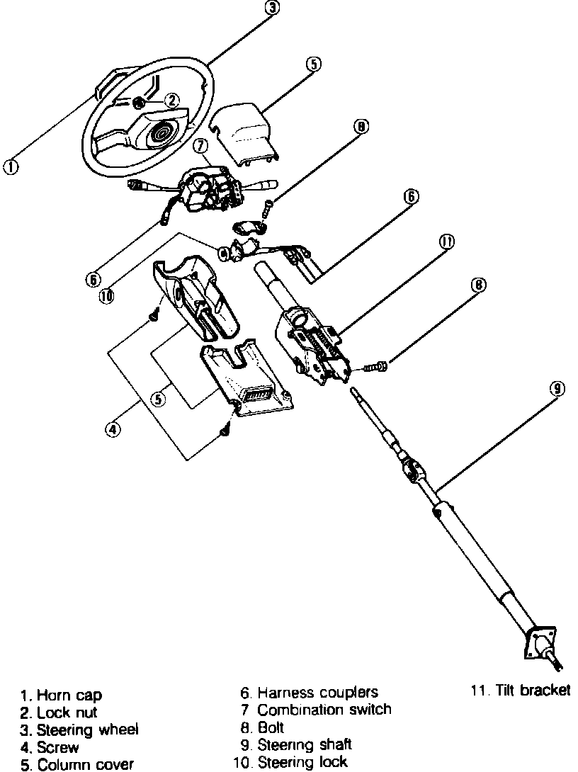 Fig. 5 Exploded view of steering column. 1986 B2000 & 1987-88 B2200 & B2600: