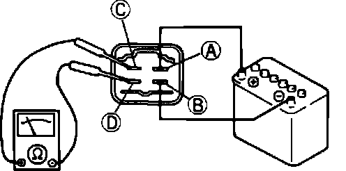 3. Check for continuity at the terminals with an ohmmeter. With 12 volts applied to the terminals, there should be continuity between terminals "C" and "D" of the main relay. With the voltage removed, there should be no continuity between terminals "C" and "D" of the main relay.