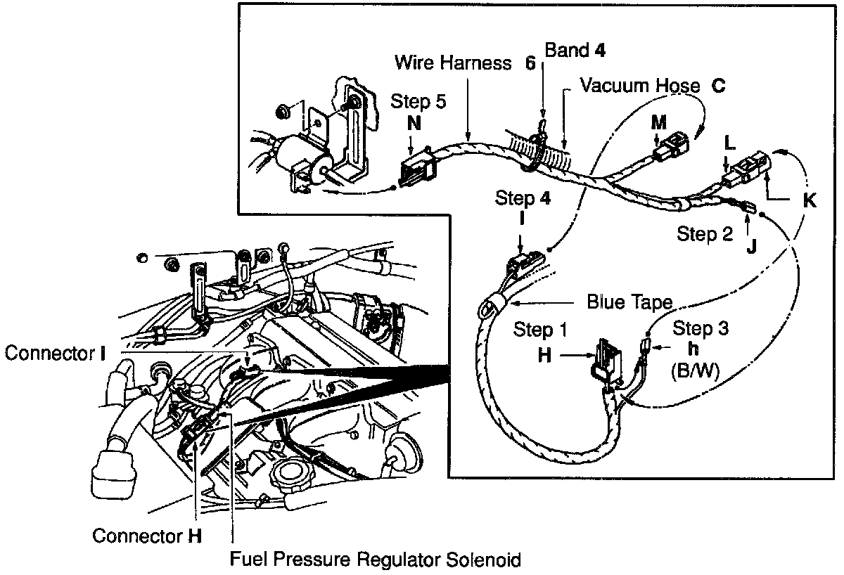 7. Reconnect black connector (H) to the fuel pressure regulator solenoid.