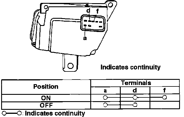 3. Check continuity between terminals of cruise control main switch. If switch operates correctly, repair wire harness.