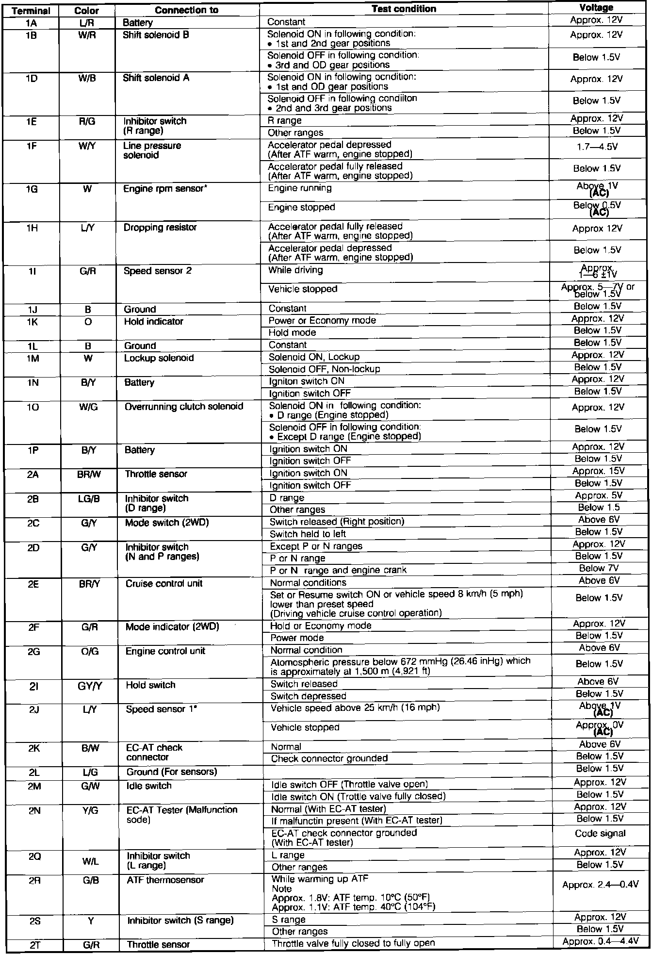 EC-AT Control System. ECU Pin Voltage Chart: