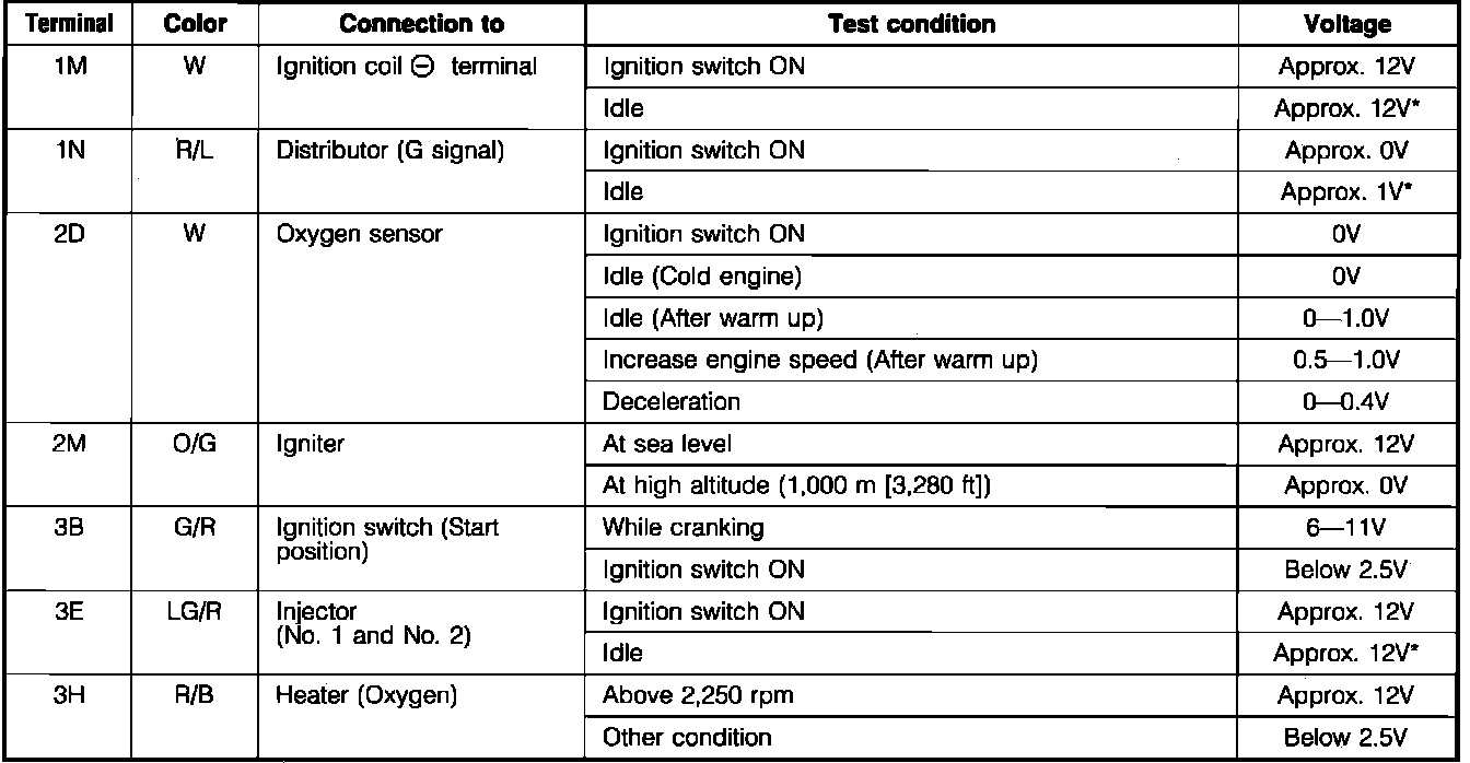 Engine Control Unit. ECU Pin Voltage Chart:
