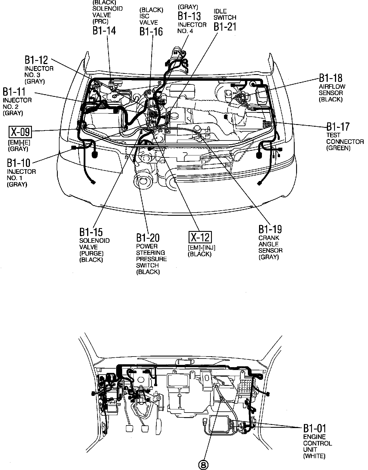 Engine Control System. Harness And Connector Locations: