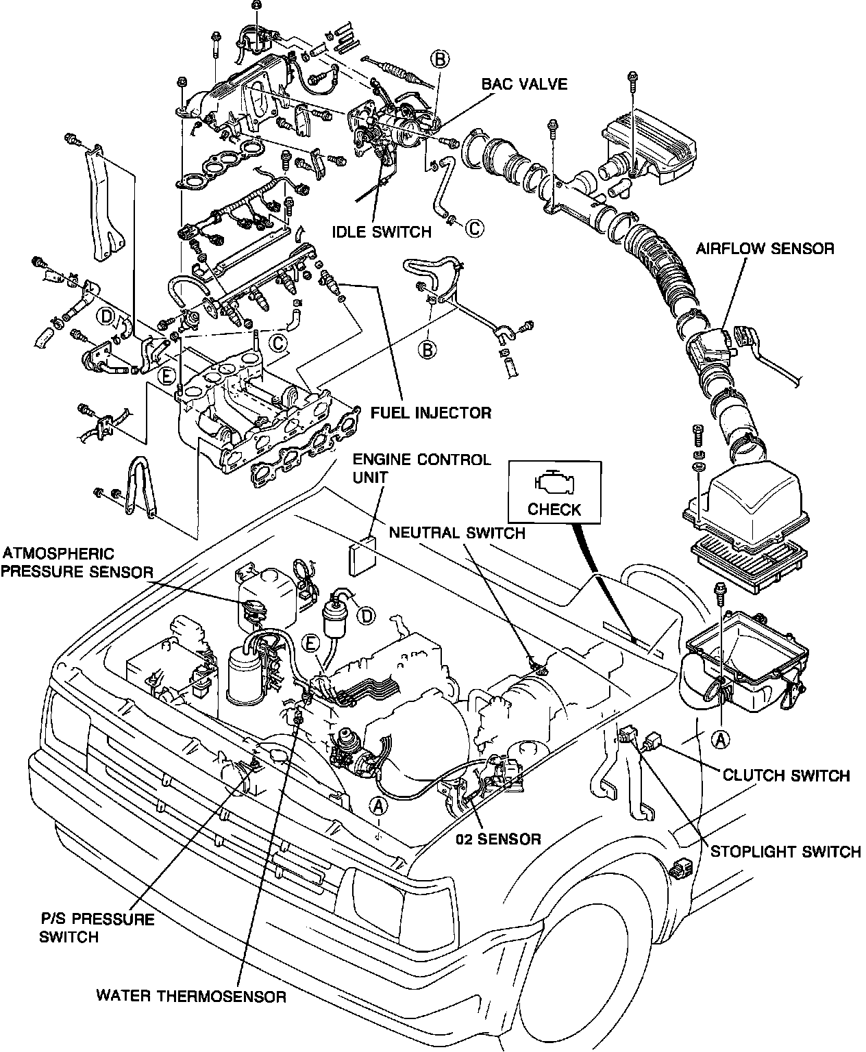 Mounted on intake boot between air cleaner box and throttle chamber.
