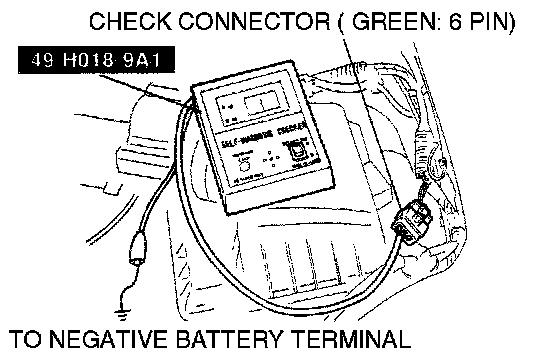 2. Connect the SST to the check connector (Green: 6-pin) and the negative battery terminal.