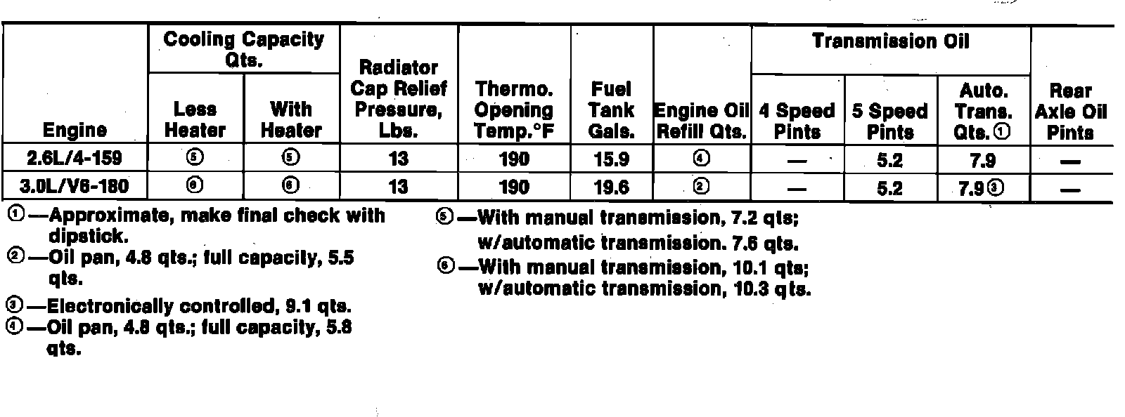 Cooling System & Capacity Data: