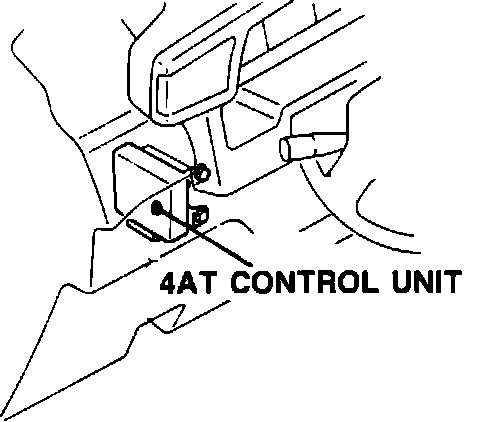 The 4 A/T Control Unit, located under the dash left of the steering column, is the control unit for various electrically operated functions of the N4A-HL automatic transmission. One of these functions is torque converter lockup or lockup inhibit, activated according to operating conditions. Control of ATF flow to the torque converter and lockup are achieved by 4 A/T control unit energizing and de-energizing the lockup solenoid on the transmission. The ATF passage is closed when current is applied and open when it is cut off.