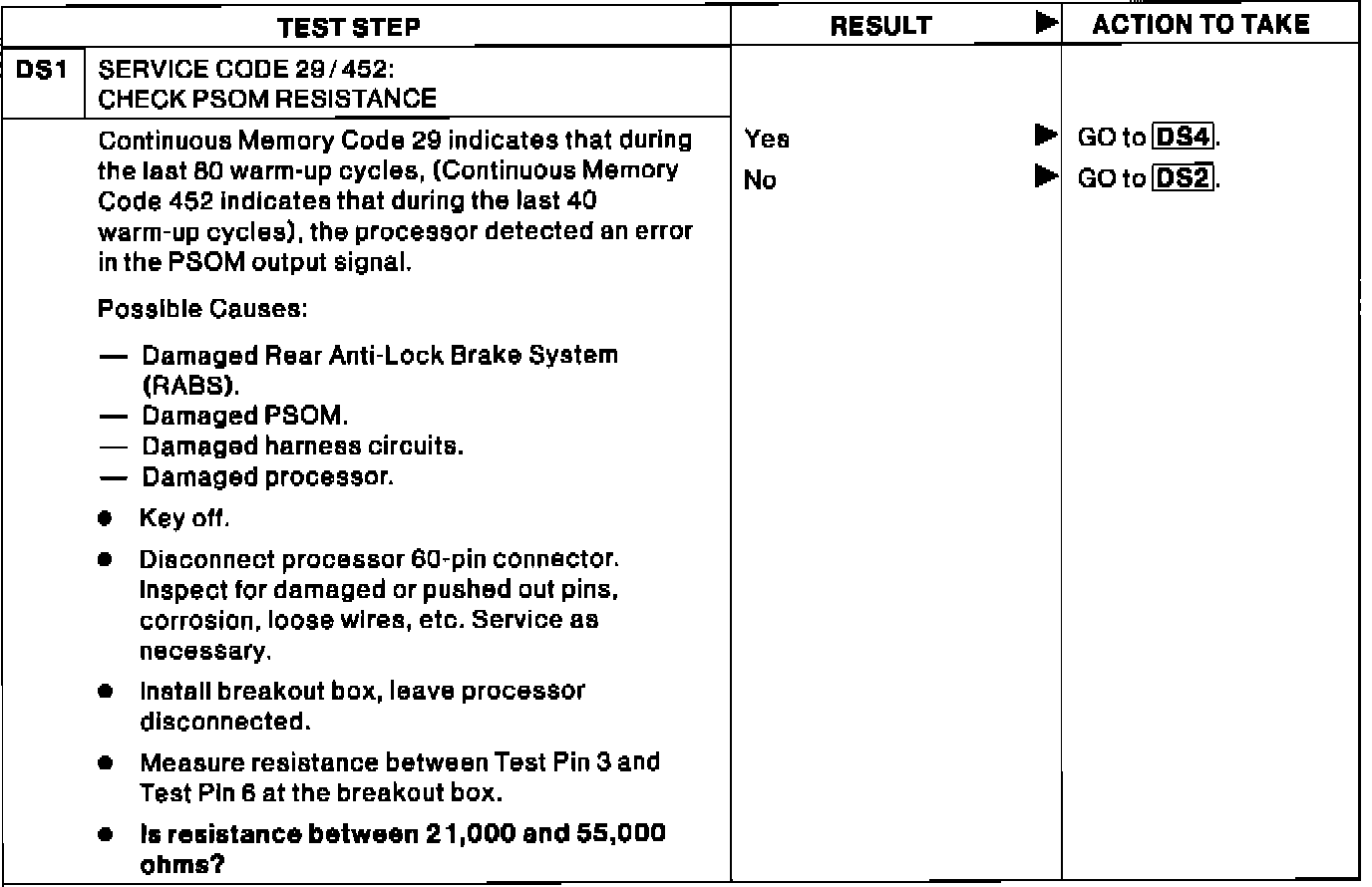 DS1 - Service Code 29/452: Check PSOM Resistance