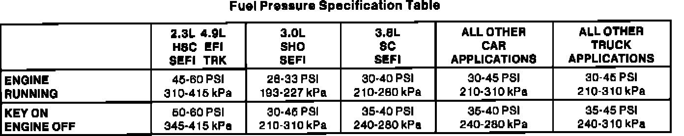 Fuel Pressure Specifications