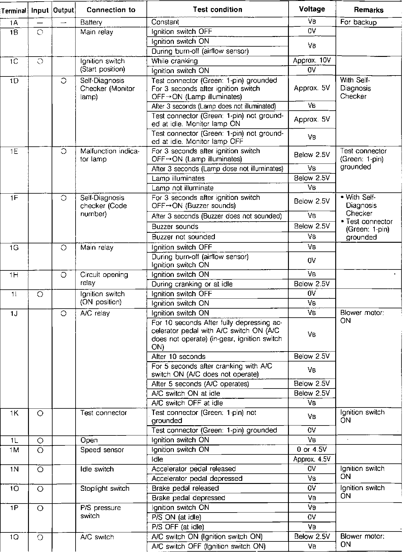ECU Pin Voltage Chart: