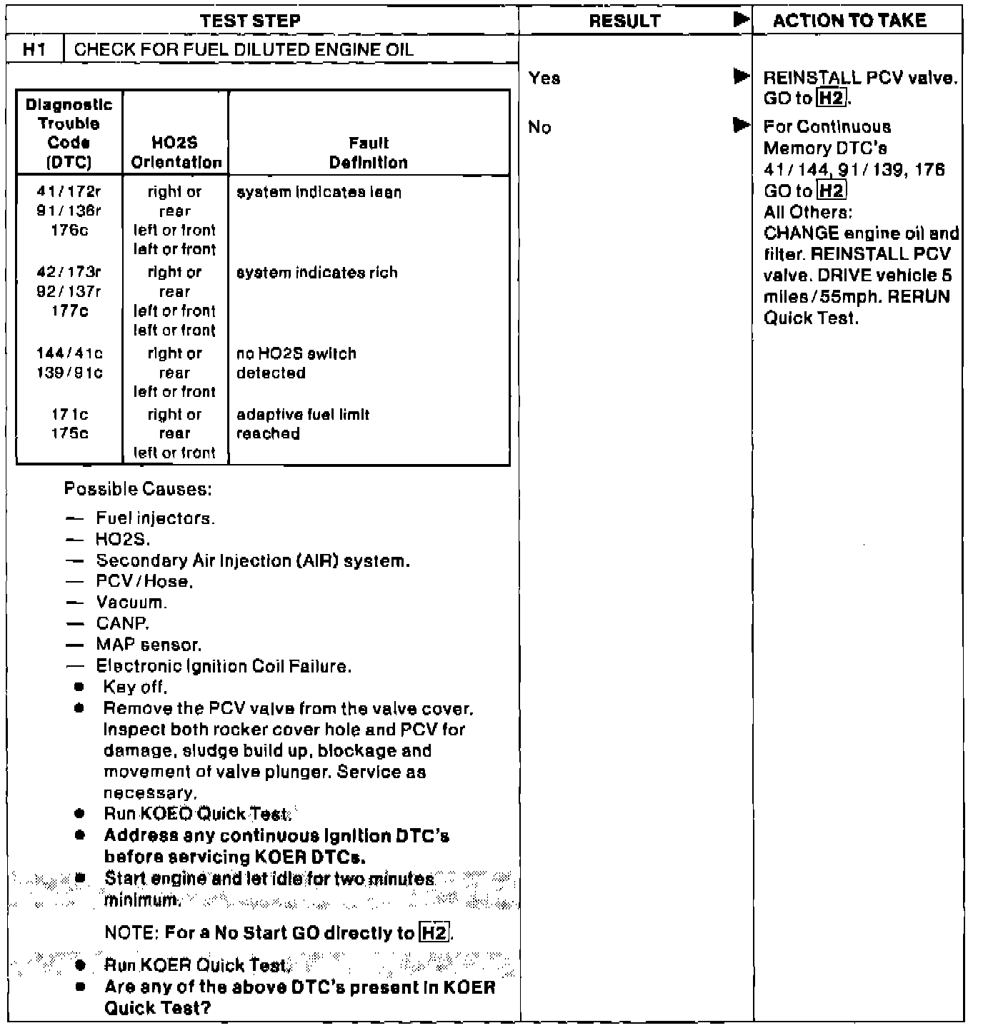 H1 - Check For Contaminated Engine Oil