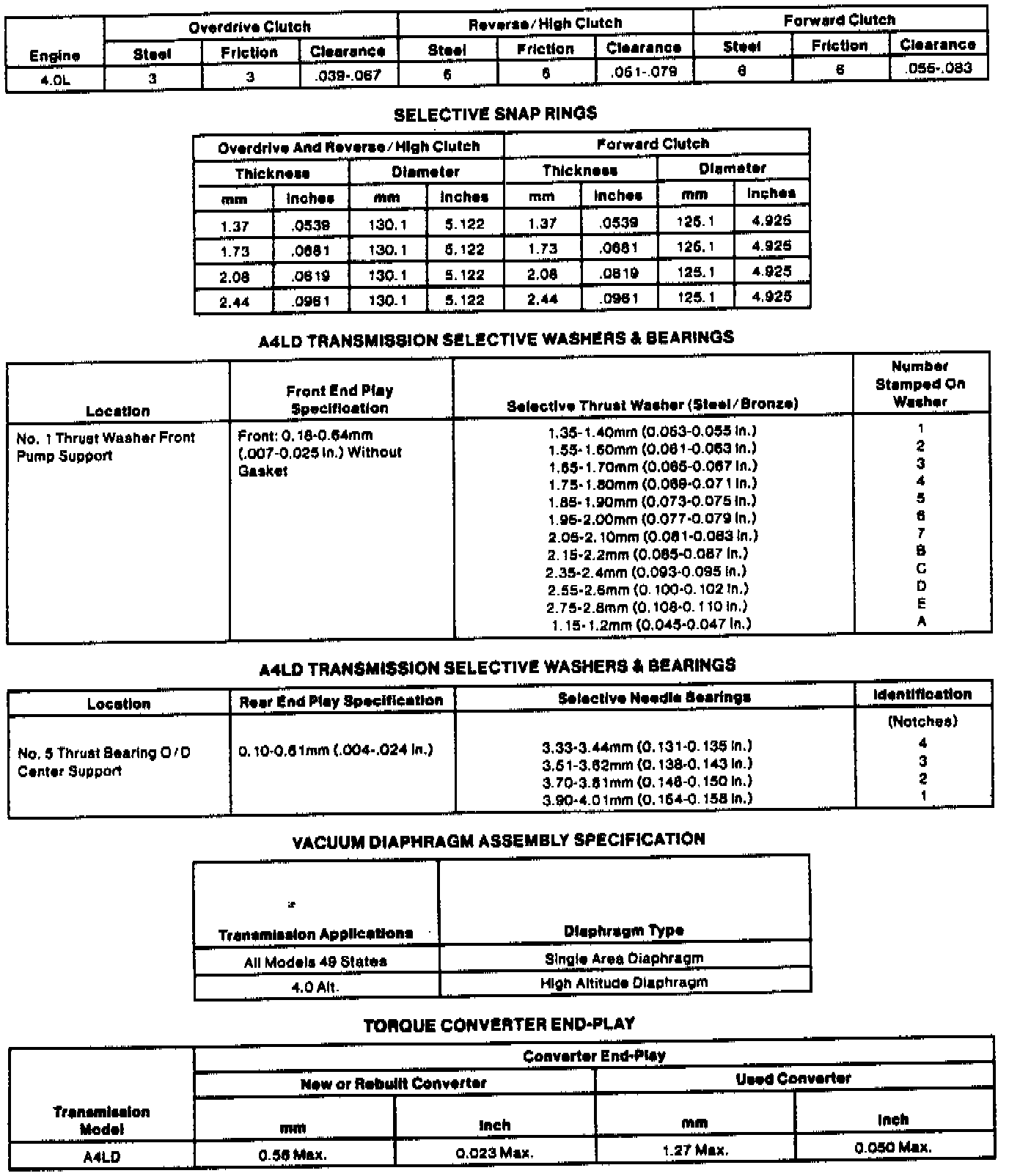 Transmission Component Specifications: