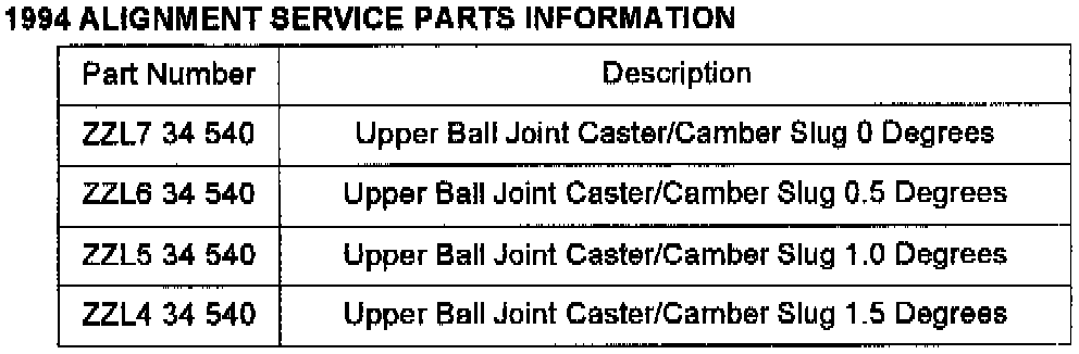 1994 ALIGNMENT SERVICE PARTS INFORMATION