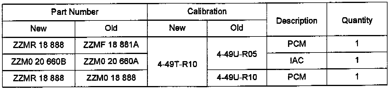 If the vehicle has a calibration code of 4-49U-R05, replace the Idle Air Control (IAC) Motor with a new level part. Refer to the Parts Information below.