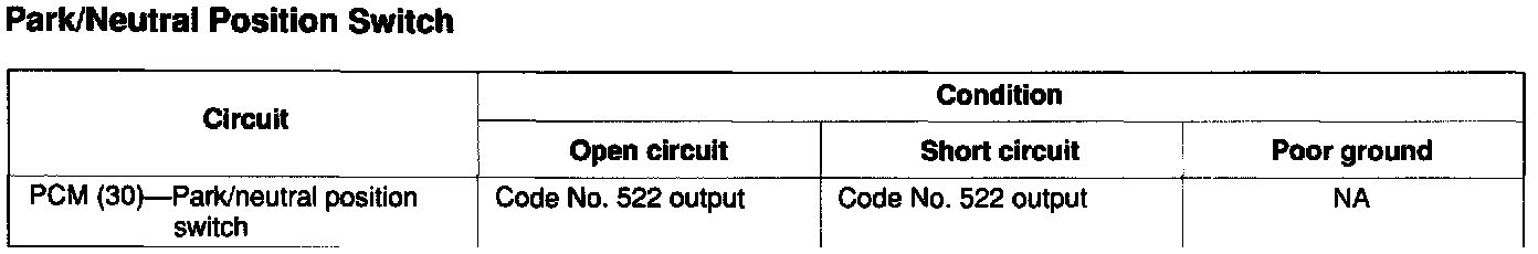 If the vehicle is not in park or neutral during diagnostic trouble code check, Diagnostic Trouble Code No. 522 is output.