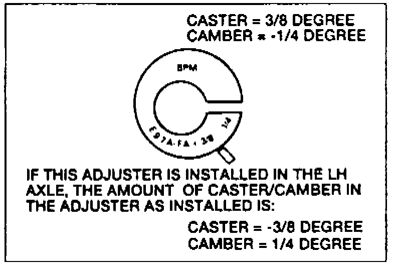 2. If adjustment is needed, determine amount of camber and caster in adjuster installed in the vehicle.