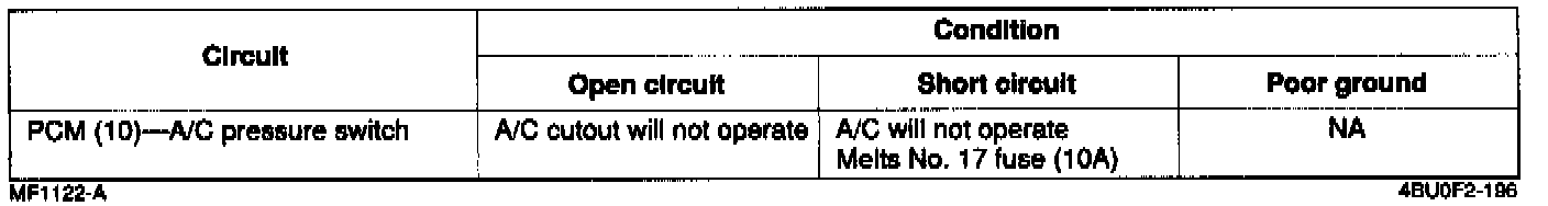 - If the circuit is shorted, the A/C will not operate.