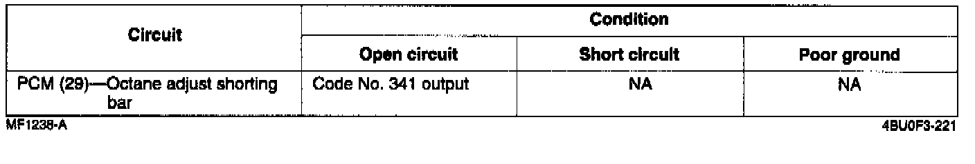 If the octane adjust shorting bar or circuit has an open, Diagnostic Trouble Code No. 341 is output.