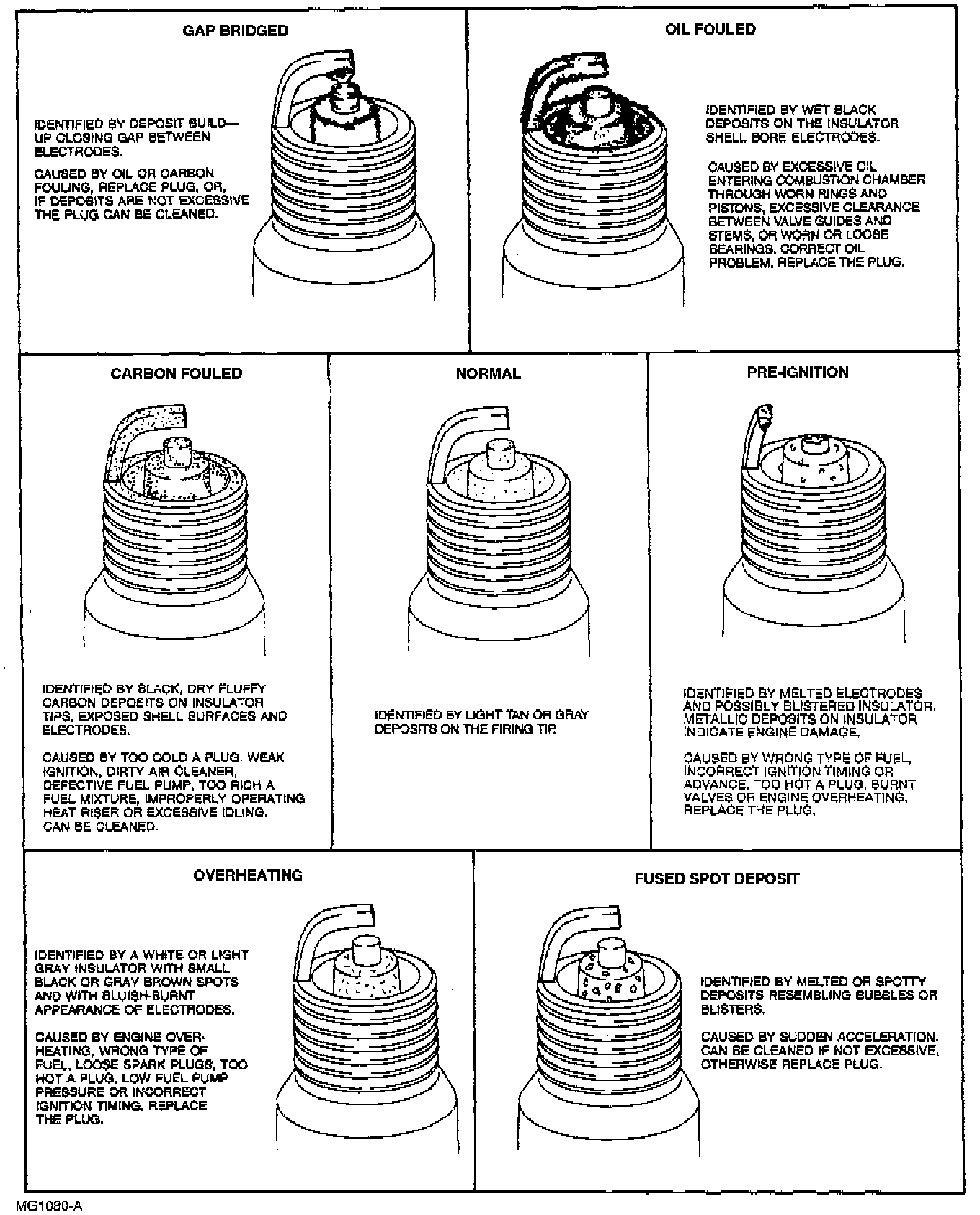 If cleaning is necessary, use a plug cleaner or a wire brush. Clean the upper insulator, also.