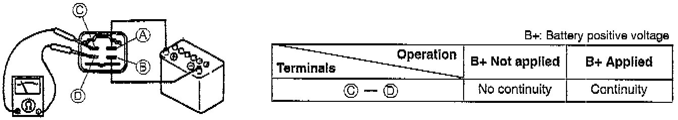 2. Apply battery positive voltage to terminal A and ground terminal B of the main relay.
