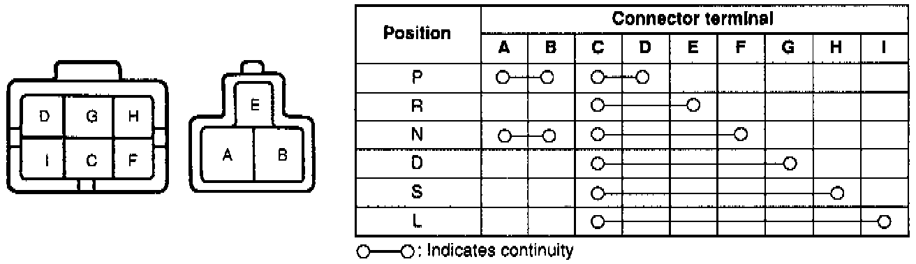 Inspection/Operation1. Verify that the starter operates with the ignition switch at the START position and the selector lever in P and N position only, and that it does not operate in any other position.