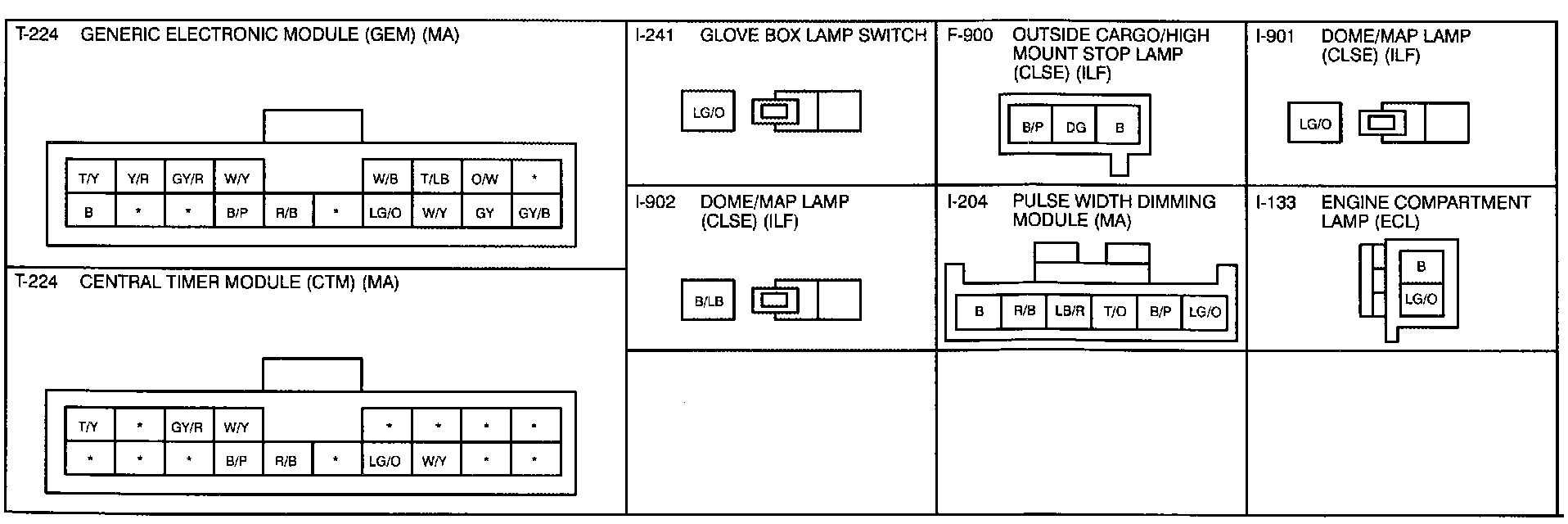 Interior Lamps, Cargo Lamp, Courtesy Lamps And Underhood Lamp-Connectors: