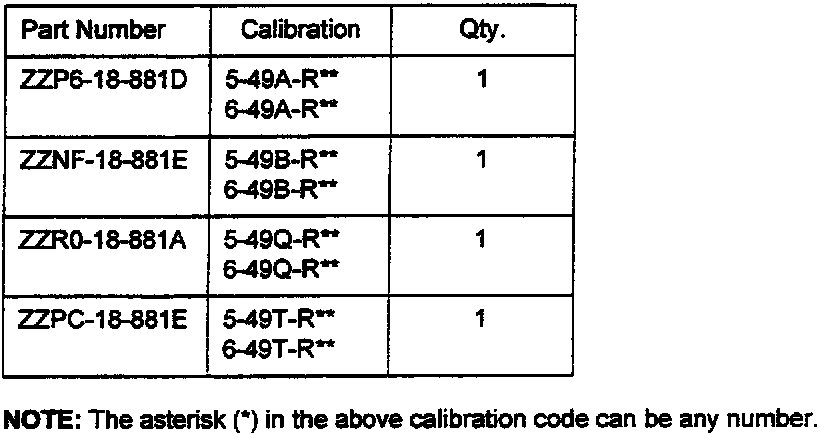 2. Confirm calibration (refer to Parts Information) and that the revised PCM is not installed already.