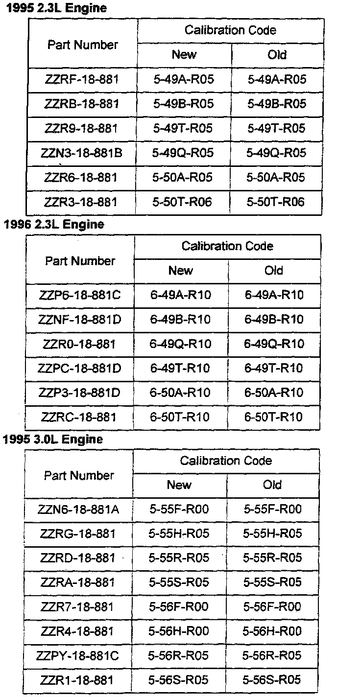 All 1995-96 B-Series with calibration codes listed in the Parts Information.