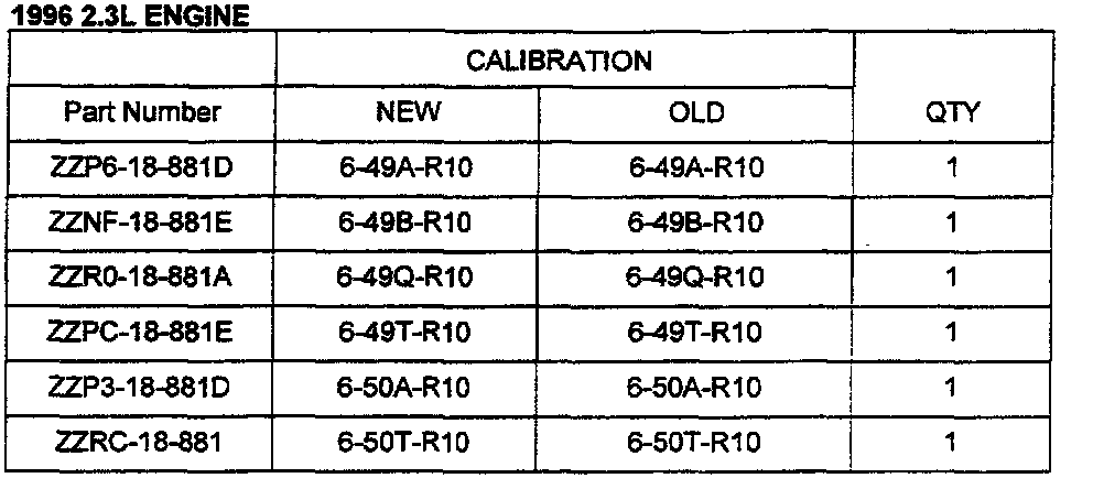 All 1996 B-2300 with calibration codes listed in the Parts Information section of this bulletin are affected.