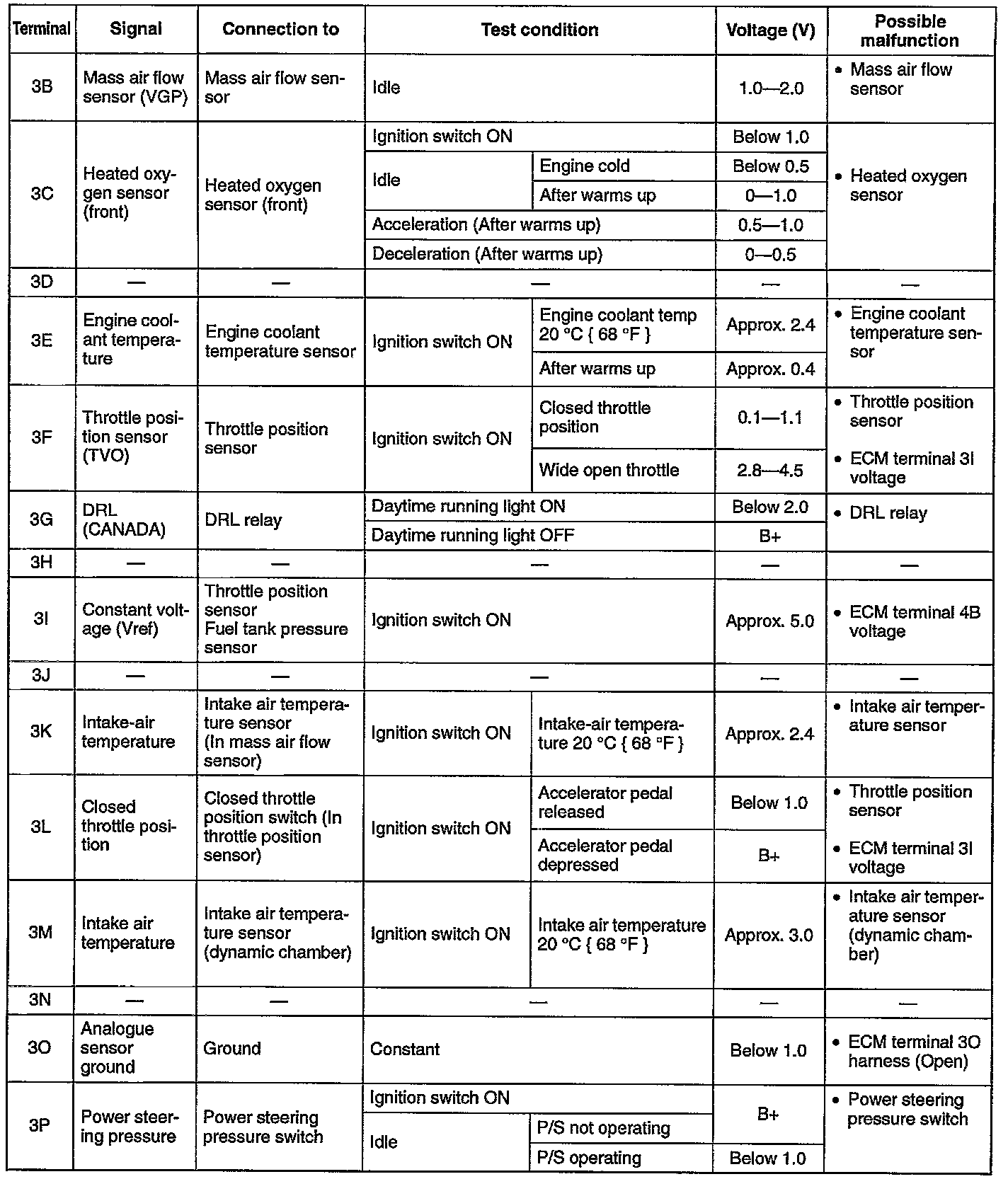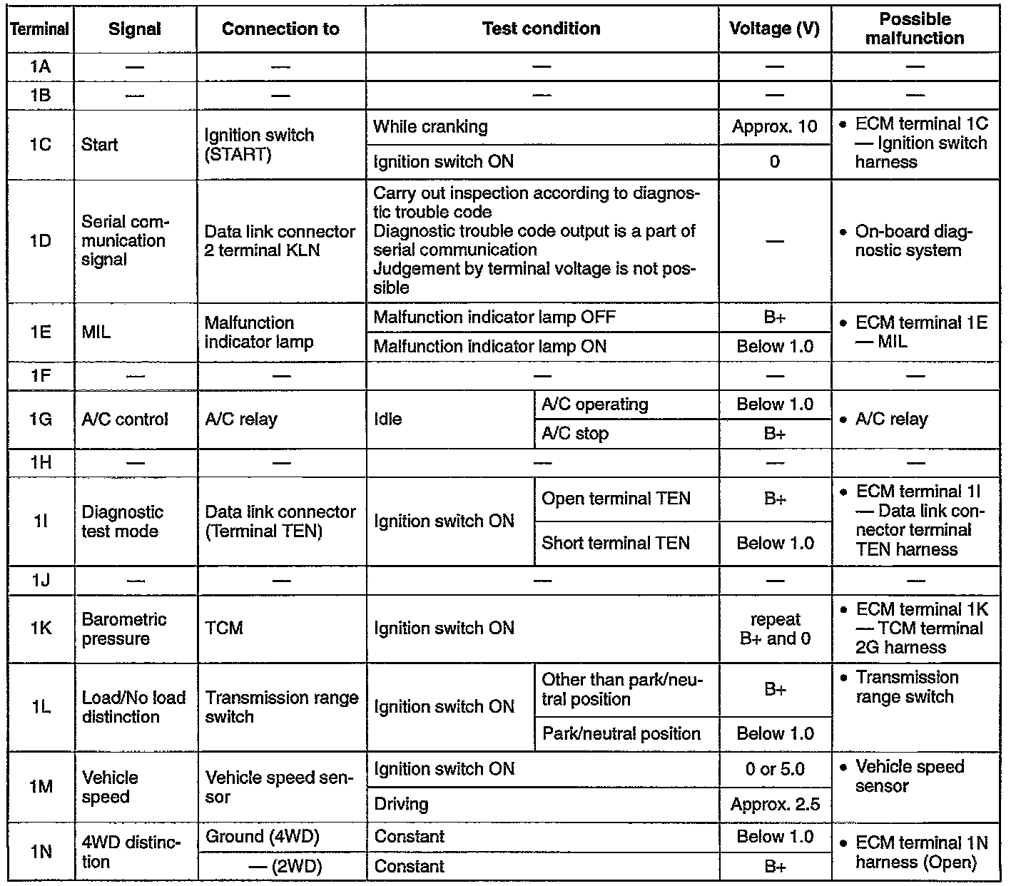 ECM Terminal Voltage Charts (Reference)